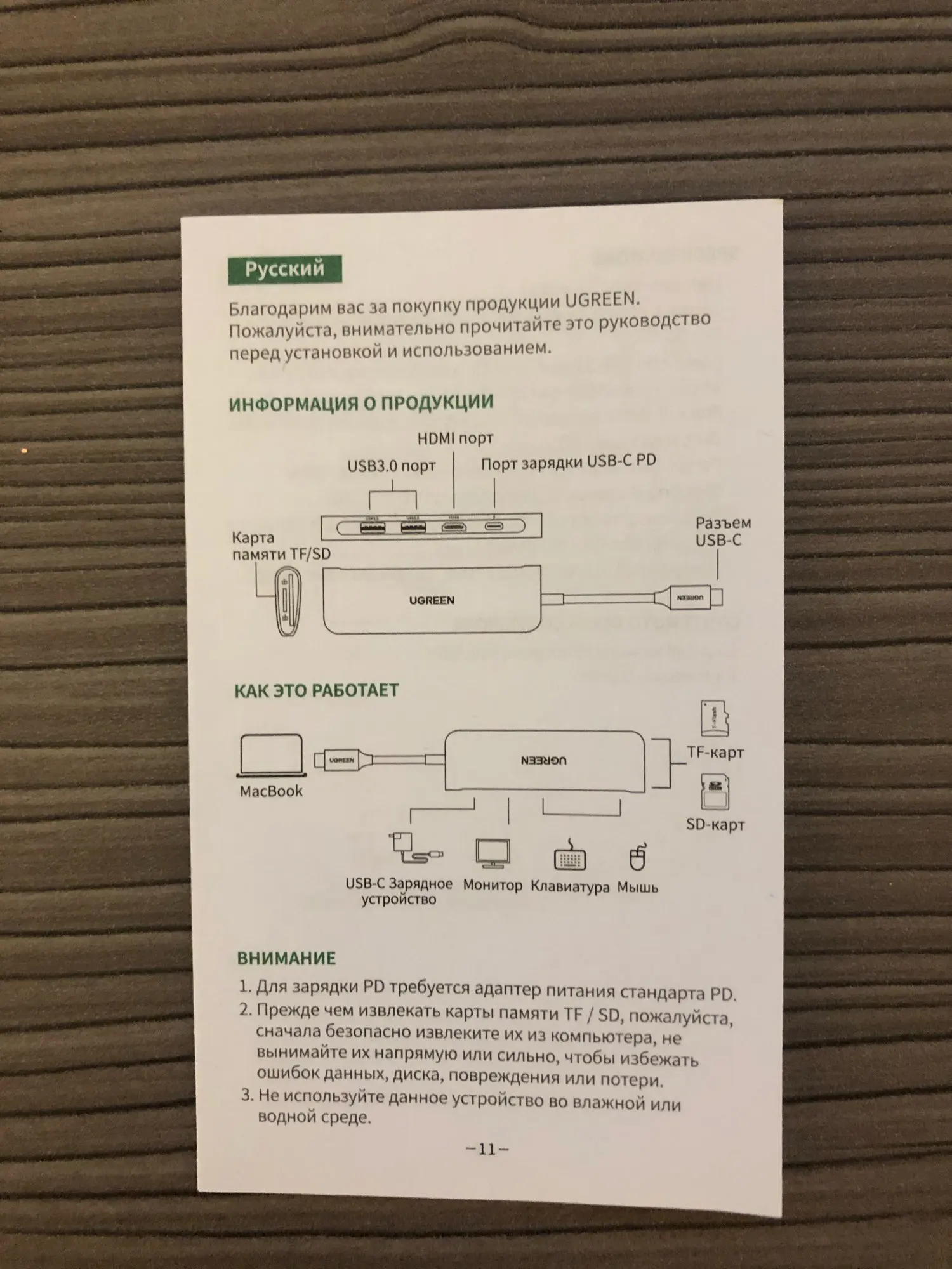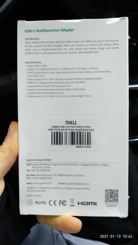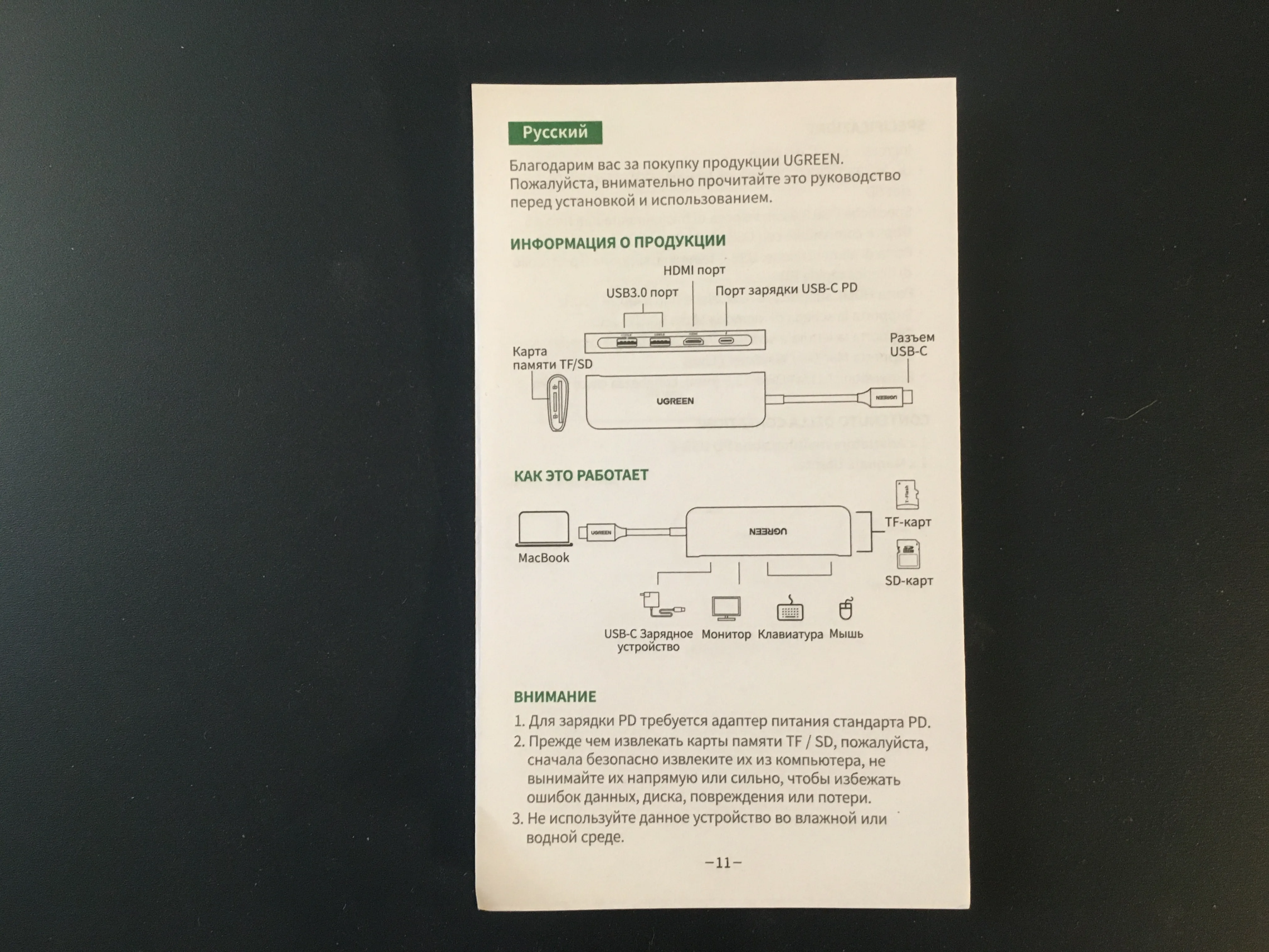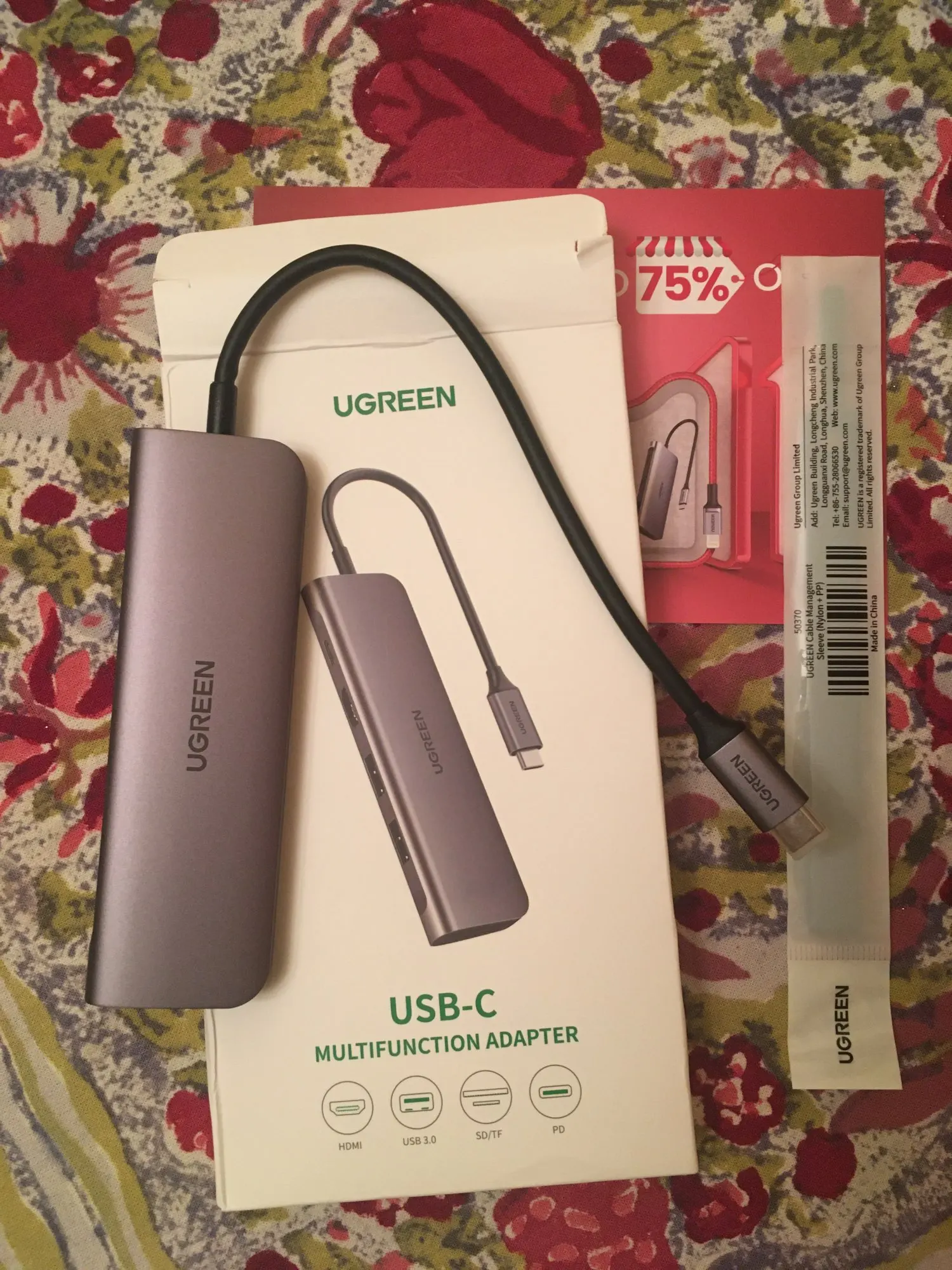 Доставка до Москвы супербыстрая - 1,5 недели до постомата (кстати, рекомендую). Пока проверил только usb и SD и microSD - работает, но скорость чтения/записи не замерял. Заметил, что хаб прилично греется, даже если не подключать зарядку через typeC. Проверял работу на MacBook Air. На днях проверю HDMI и можно будет считать тест законченным. Ugreen не удивил и не расстроил - качество по-прежнему высокое.