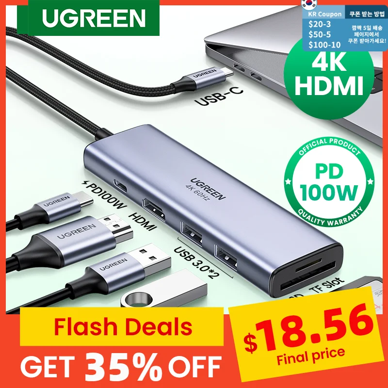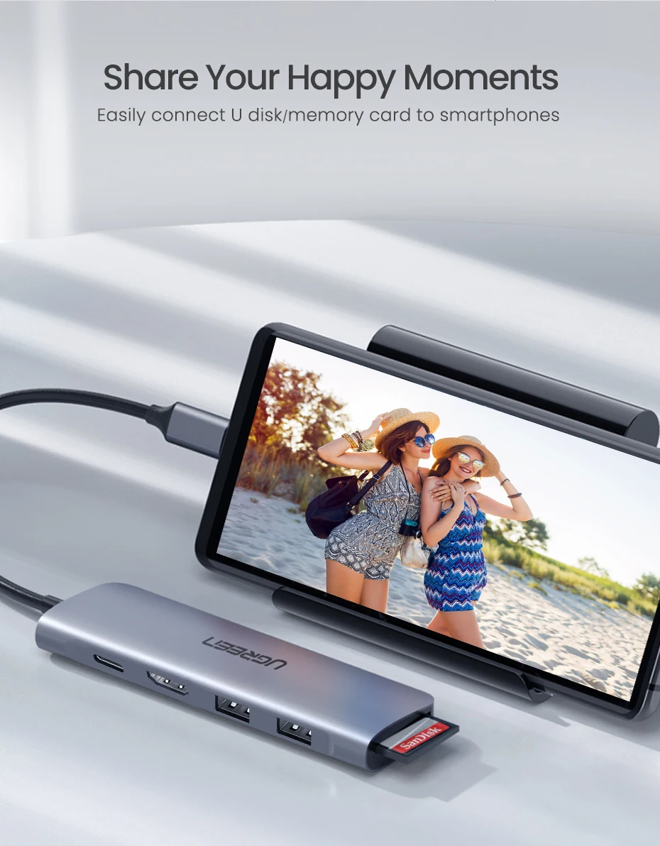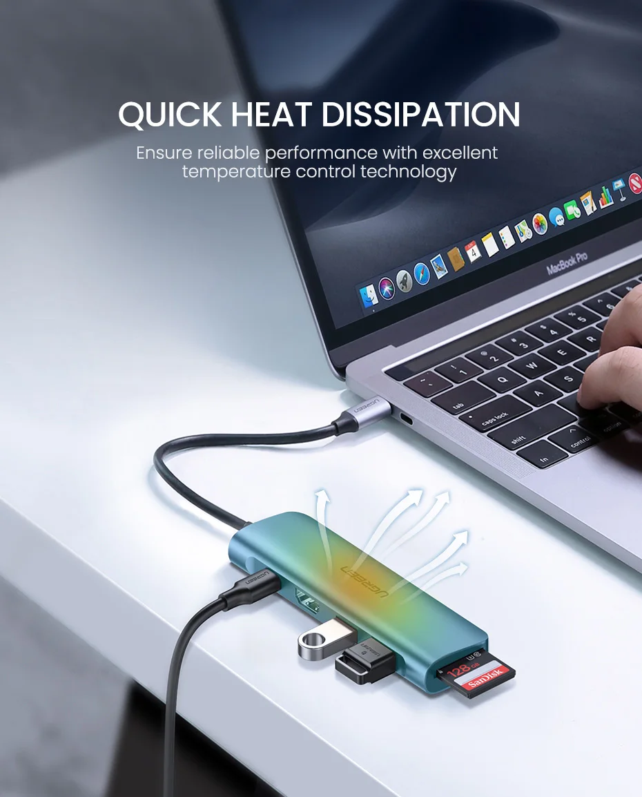 Доставка до Москвы супербыстрая - 1,5 недели до постомата (кстати, рекомендую). Пока проверил только usb и SD и microSD - работает, но скорость чтения/записи не замерял. Заметил, что хаб прилично греется, даже если не подключать зарядку через typeC. Проверял работу на MacBook Air. На днях проверю HDMI и можно будет считать тест законченным. Ugreen не удивил и не расстроил - качество по-прежнему высокое.