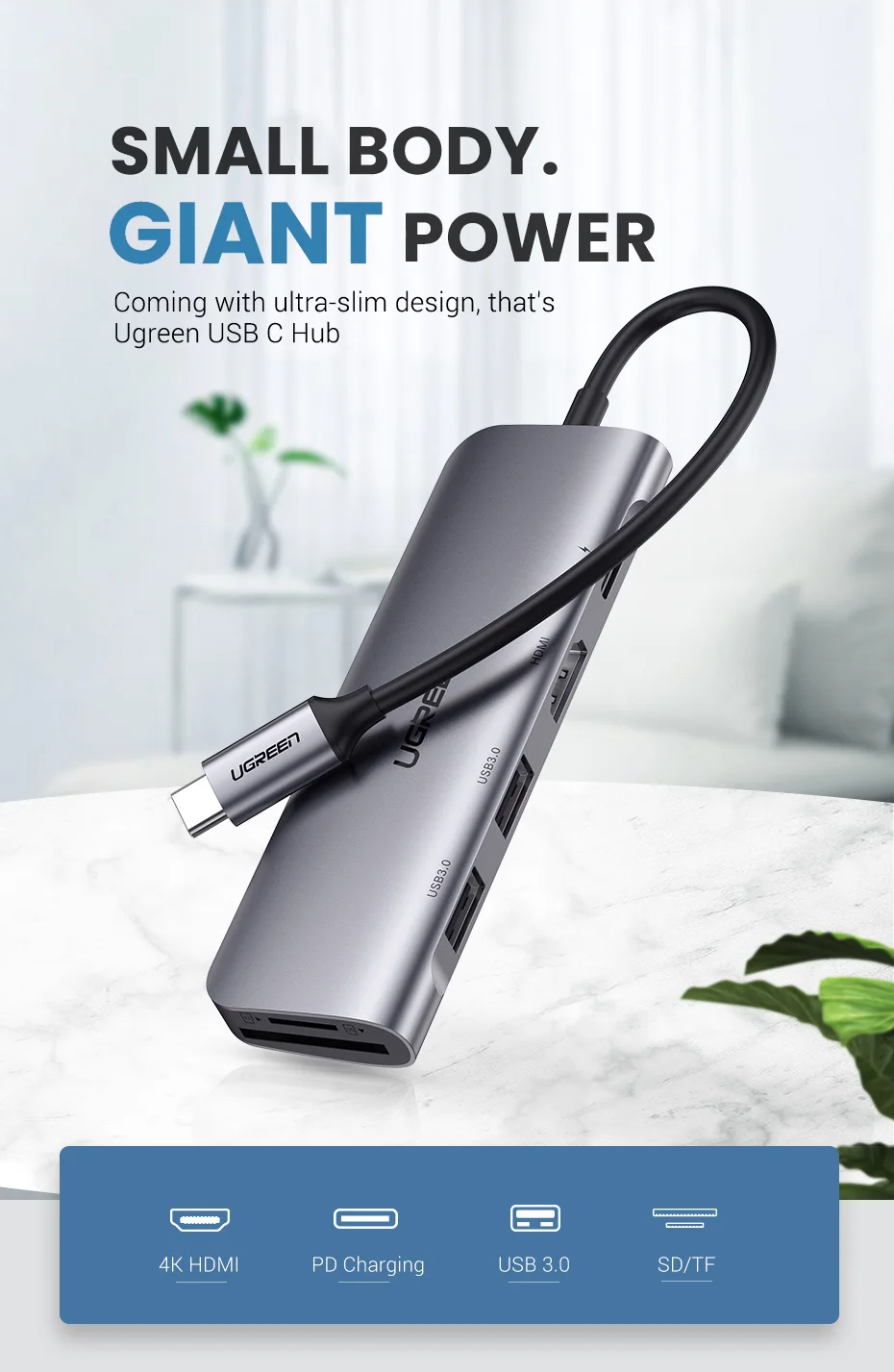 Сетевой концентратор Ugreen, переходная док-станция USB Type C USB 3.0 HDMI, разветвитель, концентратор Type C для MacBook Pro, Huawei Mate 30