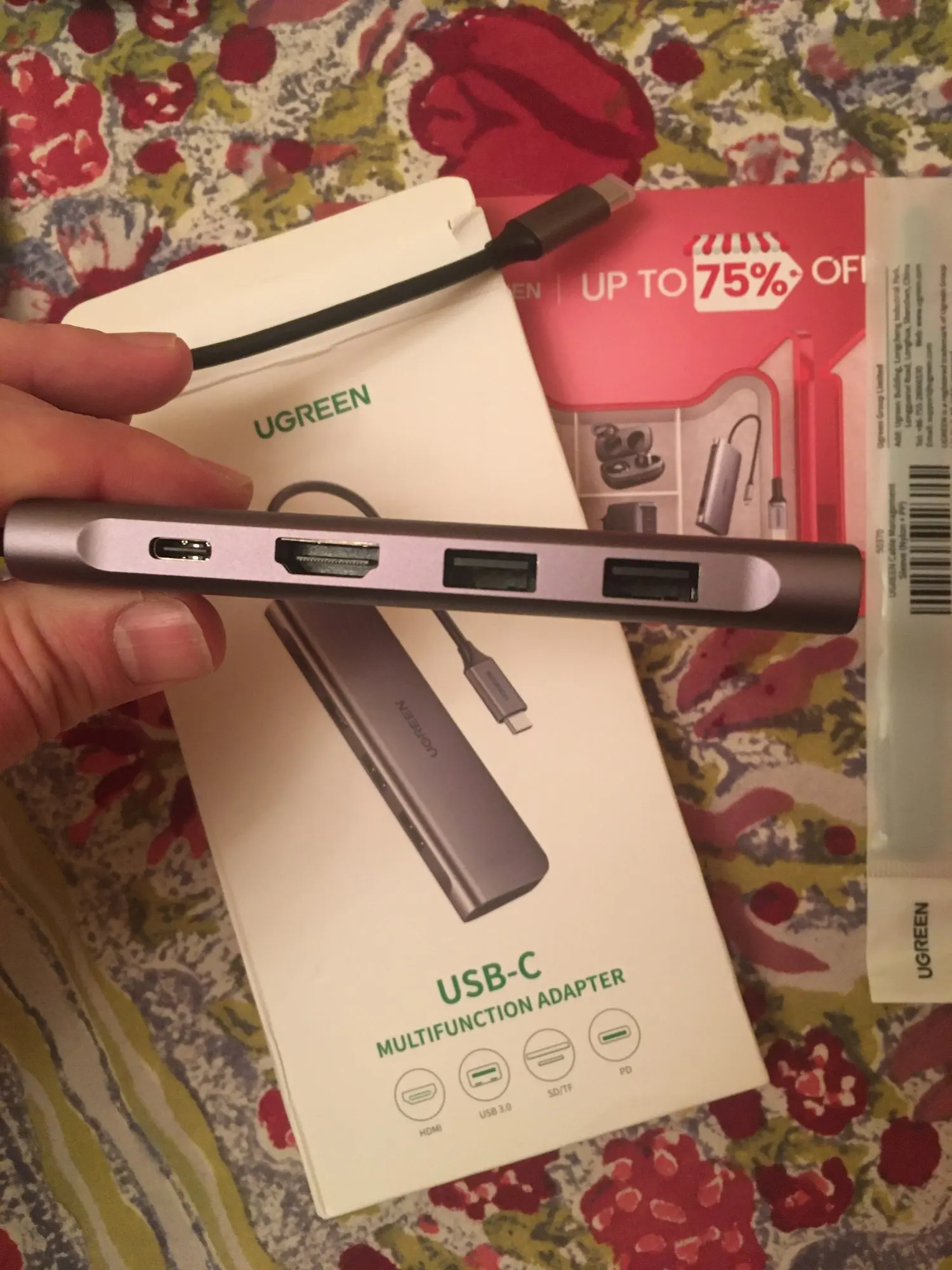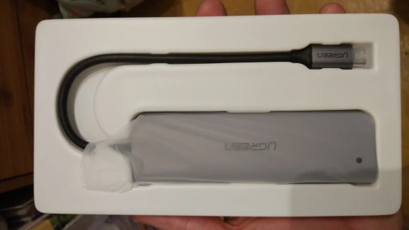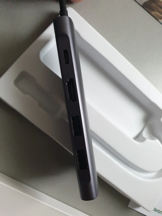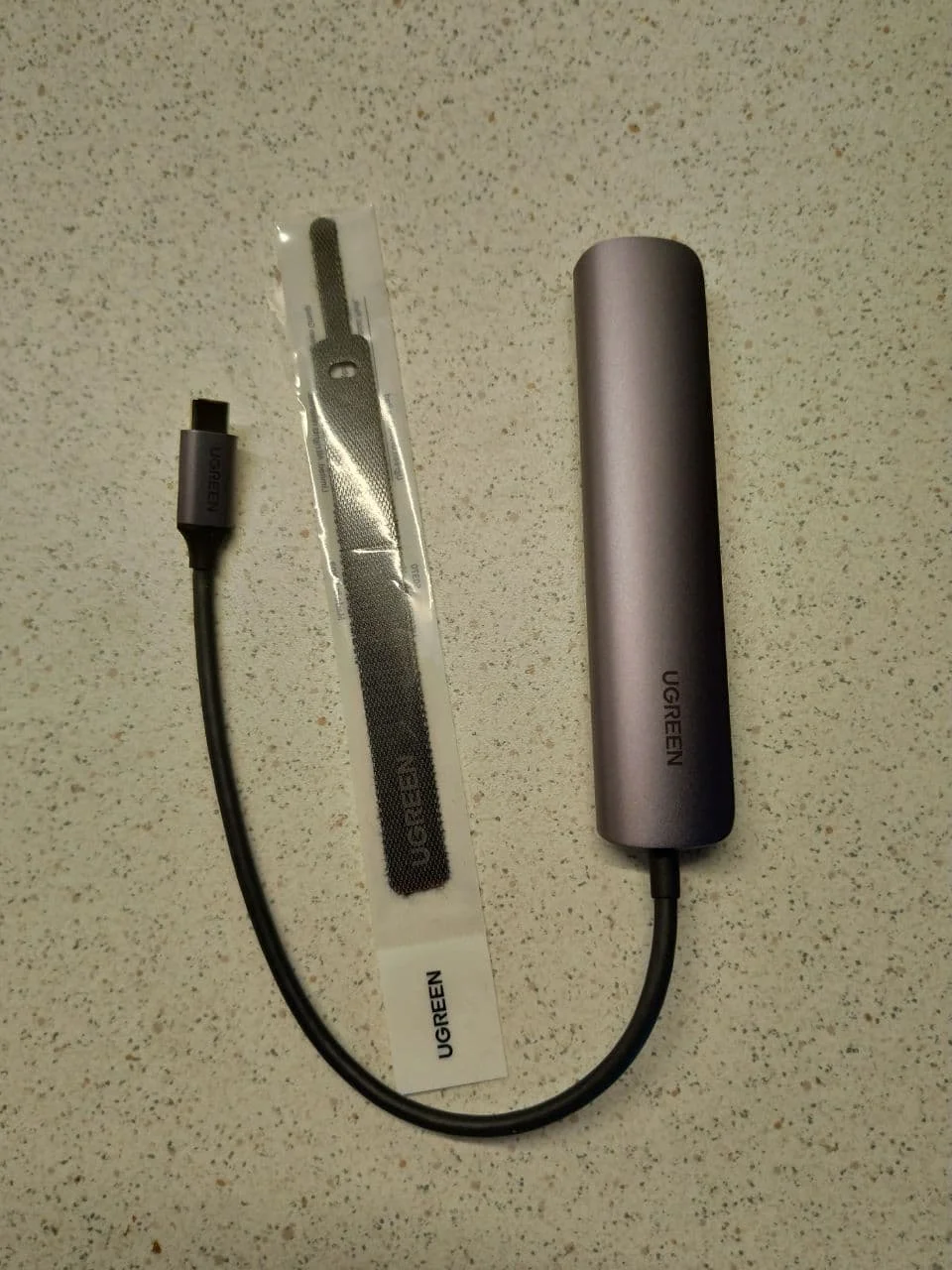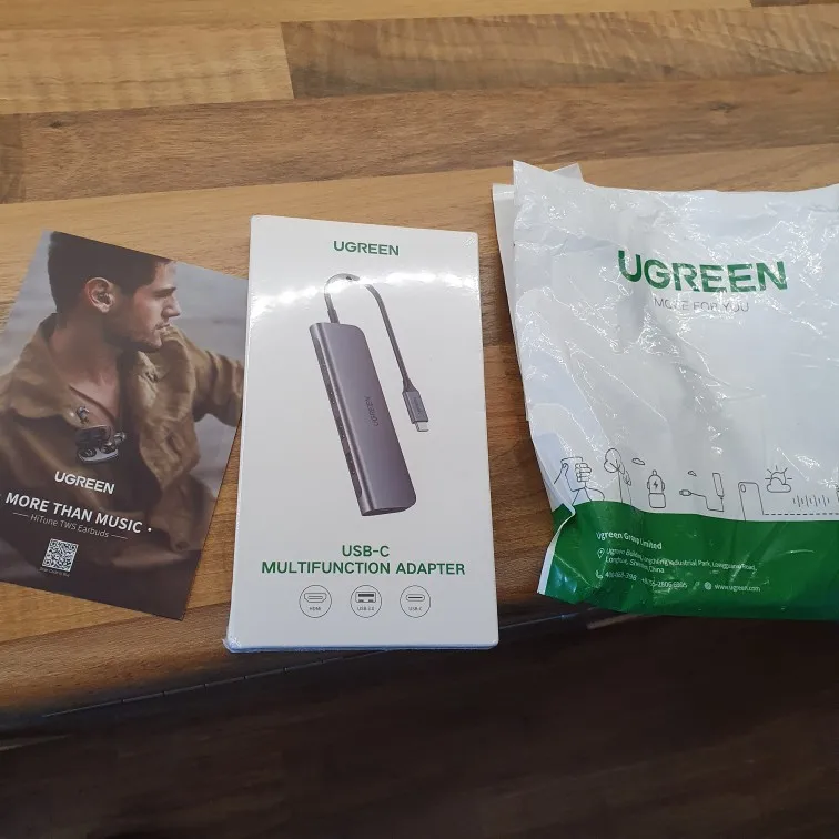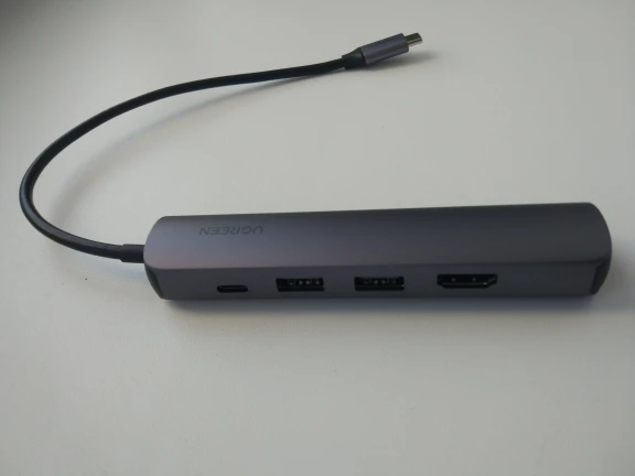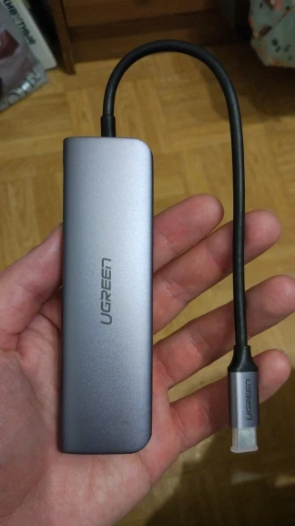 Штуковина пришла быстро, сделана качественно, ugreen умеет делать. Ещё положили ремешок для кабелей, мелочь, а приятно. Usb порты работают: мышь и клава цепляются, hdmi проверить пока не удалось. Продавец шустрый, рекомендую.