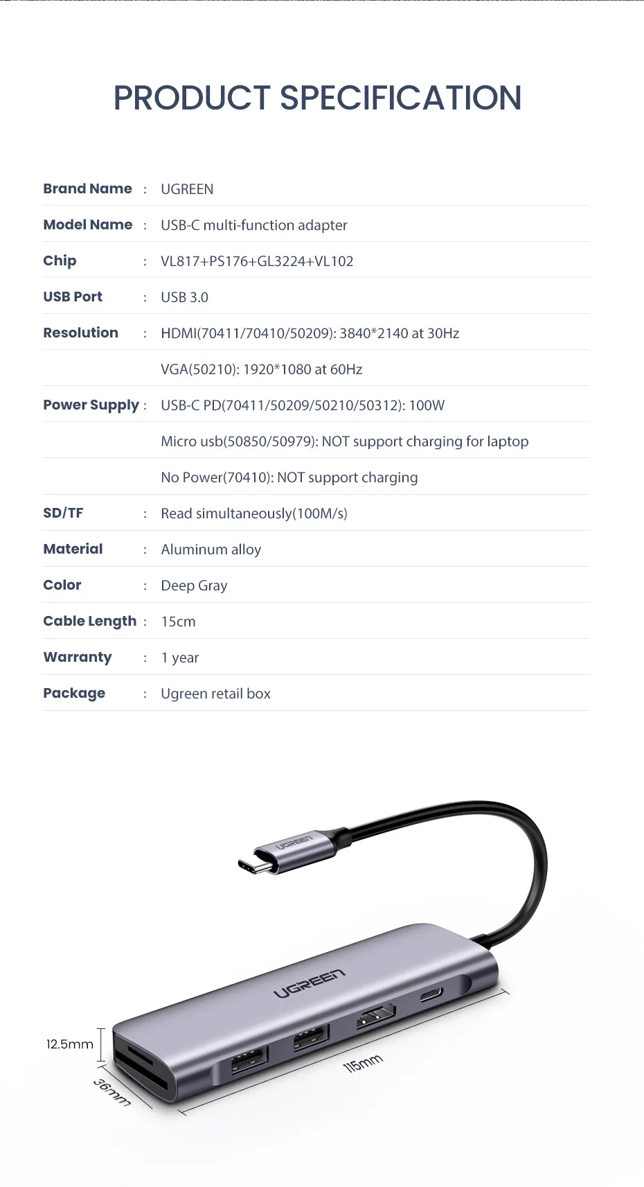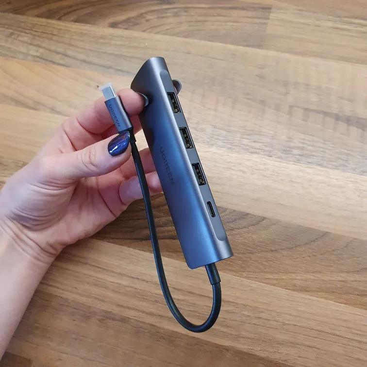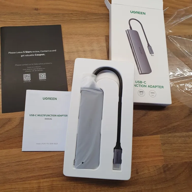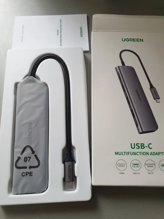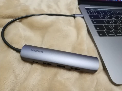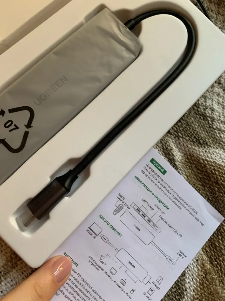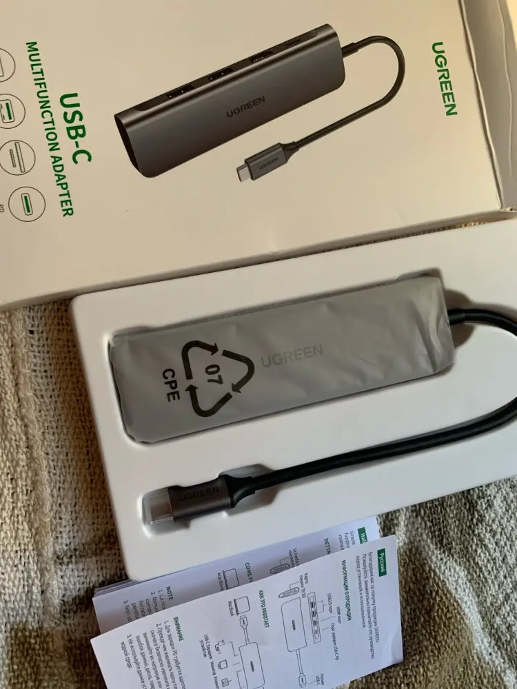 Штуковина пришла быстро, сделана качественно, ugreen умеет делать. Ещё положили ремешок для кабелей, мелочь, а приятно. Usb порты работают: мышь и клава цепляются, hdmi проверить пока не удалось. Продавец шустрый, рекомендую.