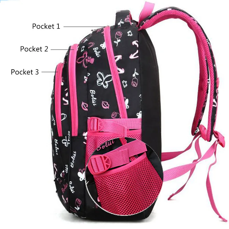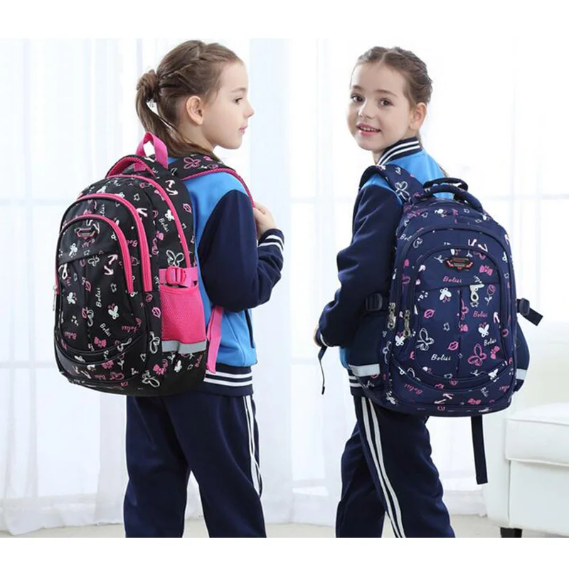 Школьный рюкзак для девочек с принтом бабочки, красивые черные детские сумки на плечо, 17 дюймов