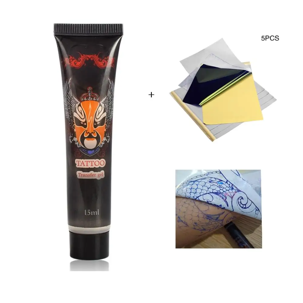Особенности: 1.100% новый и высокое качество. 2. Это тату-индустрия, лучшие материалы для переноса, никакого вреда для человеческого тела. 3. Прозрачный гель-как, прямой и равномерно наносится на кожу, безопасный, гигиенический, удобный, хороший эффект переноса. 4. Идеально подходит для начинающих или профессиональных татуировщиков.