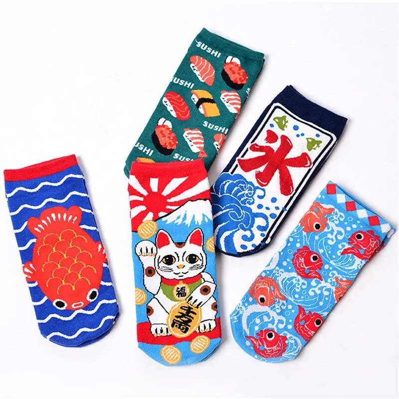 EIOISAPRA женские милые Мультяшные забавные дизайнерские Носки с рисунком кота рыбы суши, творческие Носки, японские носки Харадзюку