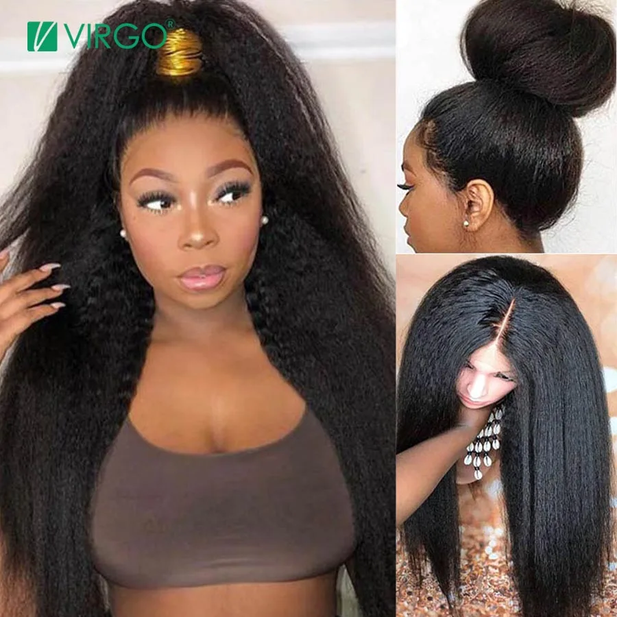 Virgo Волосы Кудрявые прямые парик Glueless бразильские кружевные передние человеческие волосы парики для черных женщин предварительно сорванные 13х4 Remy Yaki парик 150%