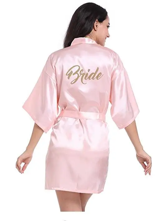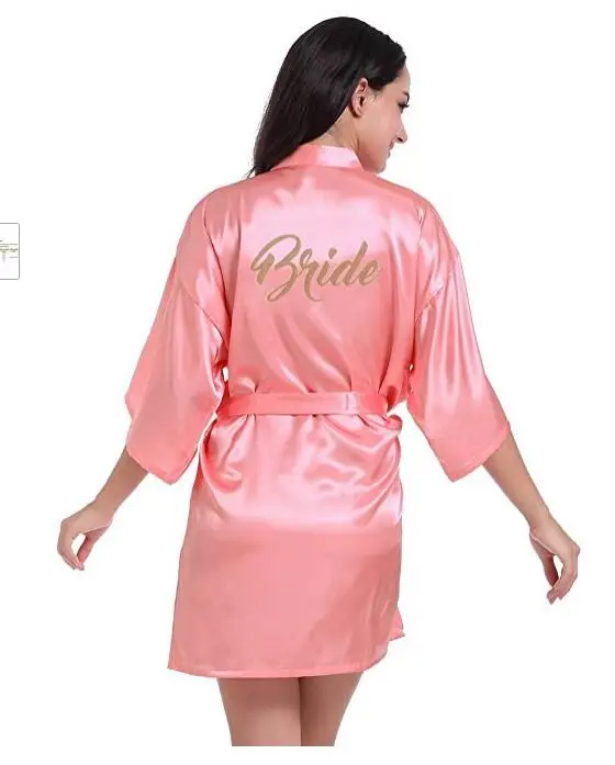 RB70 2017 сексуальный халат для свадебвечерние с надписью для подружки невесты на спине женское Короткое атласное свадебное кимоно одежда для сна готовые халаты