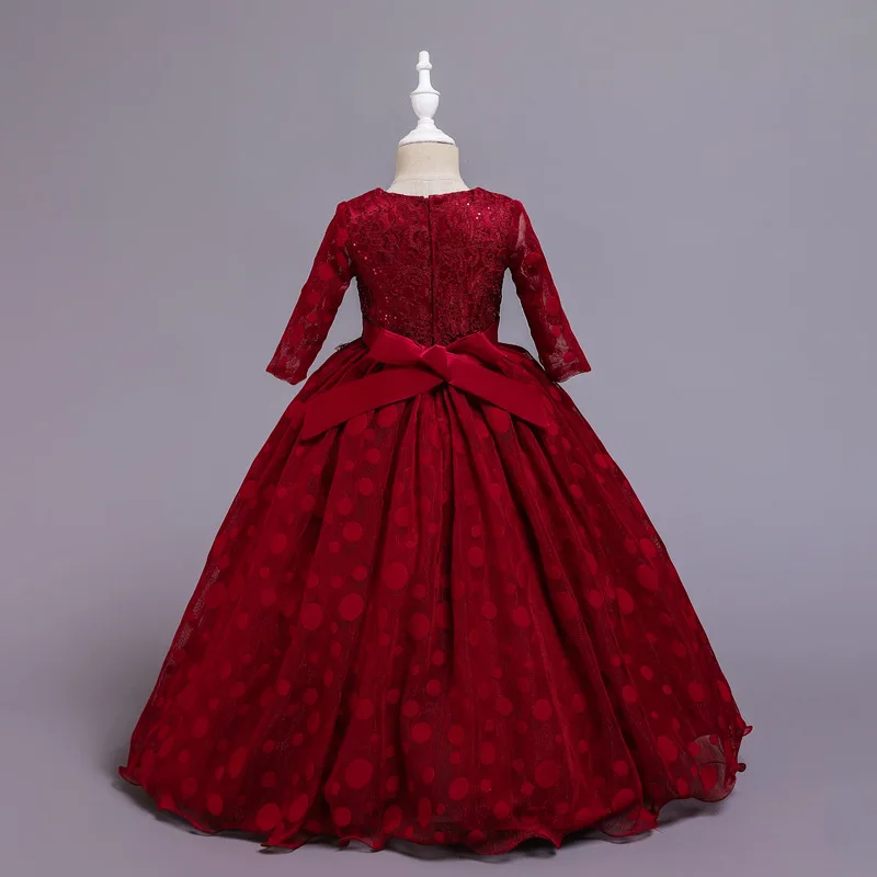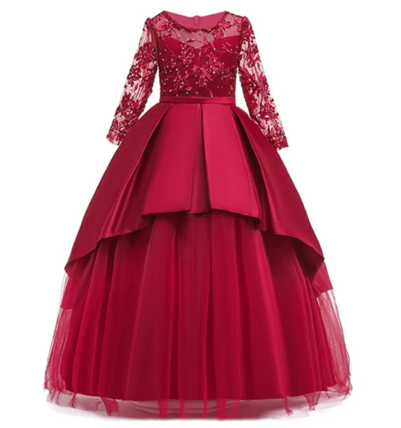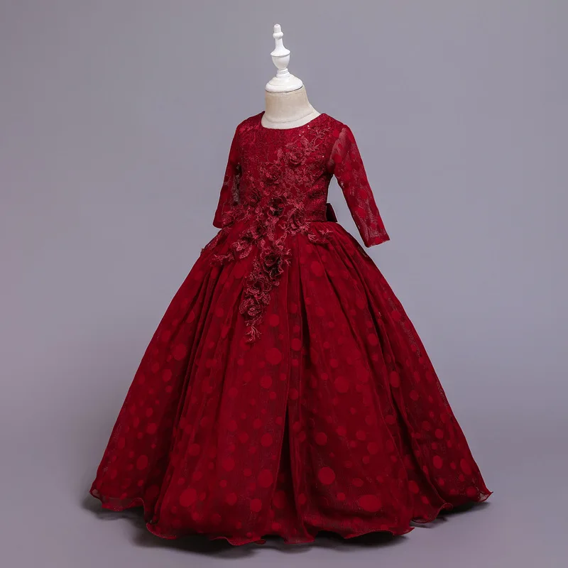 2021 женское свадебное платье стразы с длинными рукавами для первого причастия официальное длинное кружевное Пышное рождественское платье принцессы Выпускной костюм