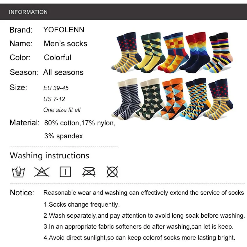 Носки мужские 10 партЛот, забавные цветные хлопковые в горошек, полосатые, с рисунком ромбиками, повседневные счастливые, сумасшедшее платье, дышащие, для свадьбы