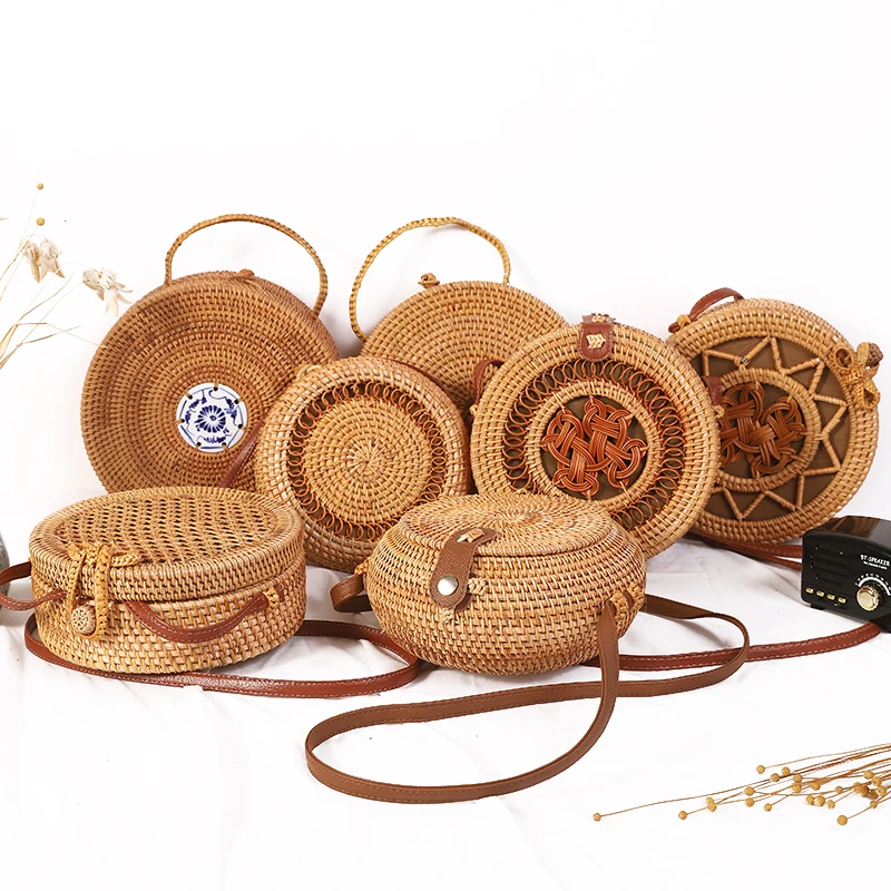 2021 INS популярная женская круглая пляжная сумка ручной работы, круглые соломенные сумки с Бали, летние плетеные сумки из ротанга, женская сумка-мессенджер