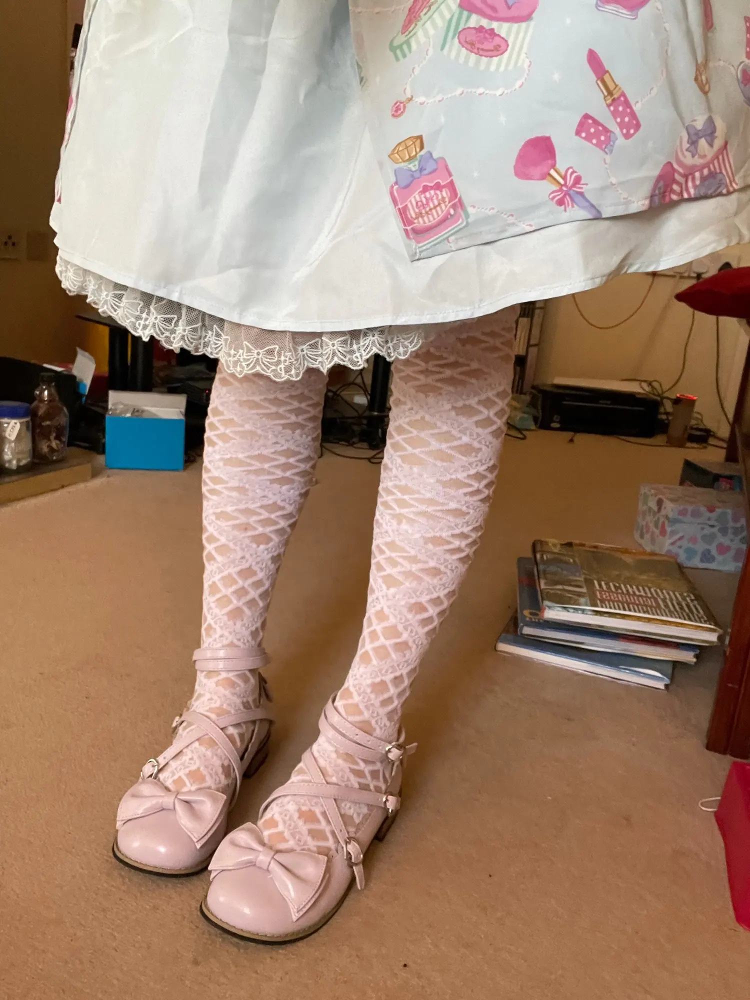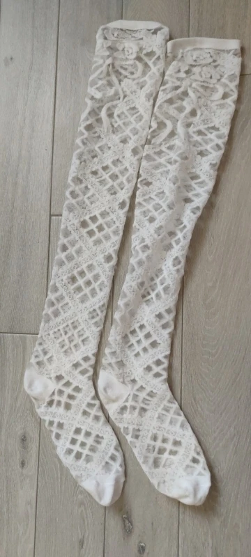 Милые ажурные белыечерные готические чулки до бедра, кружевные длинные летние чулки