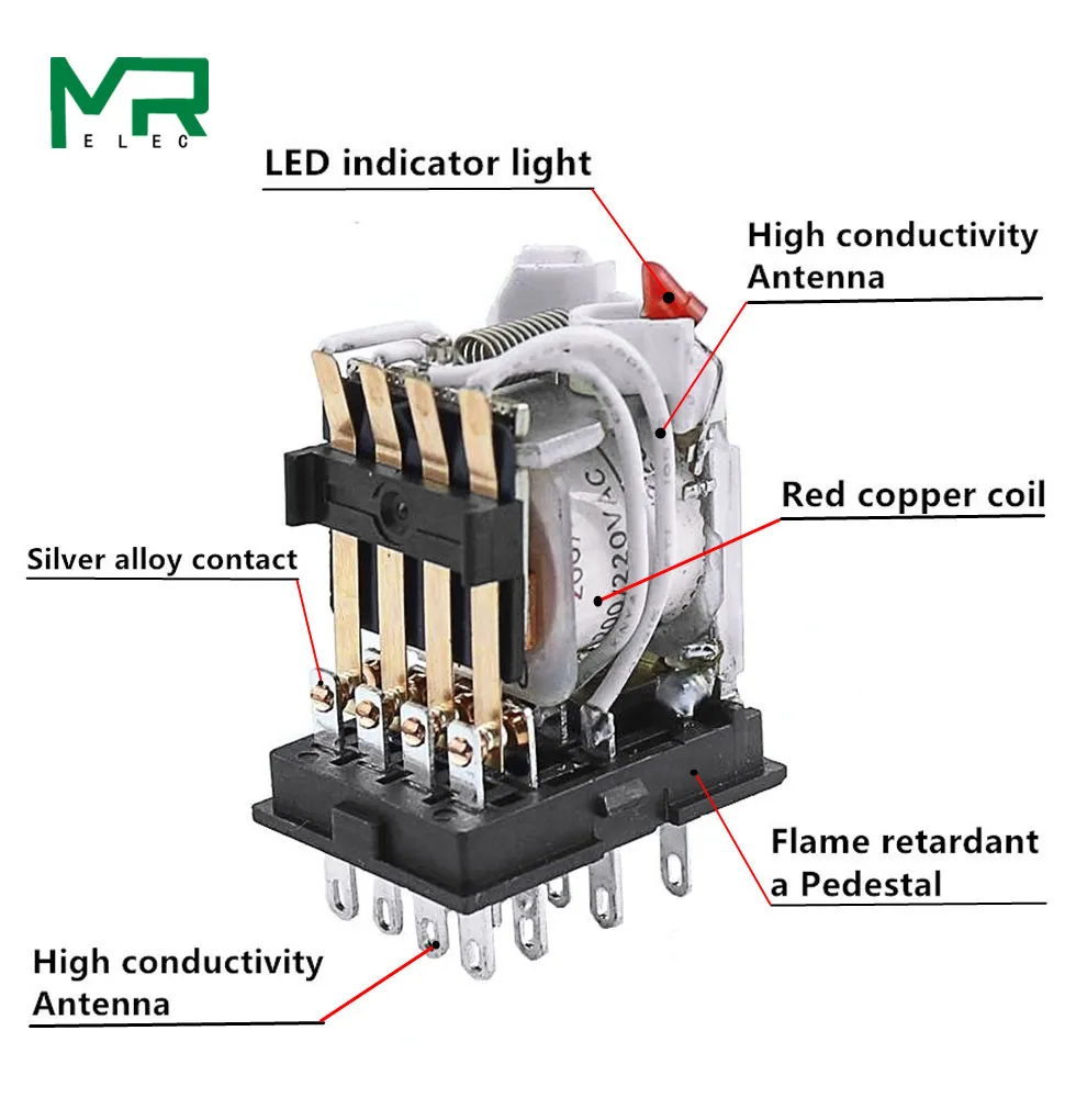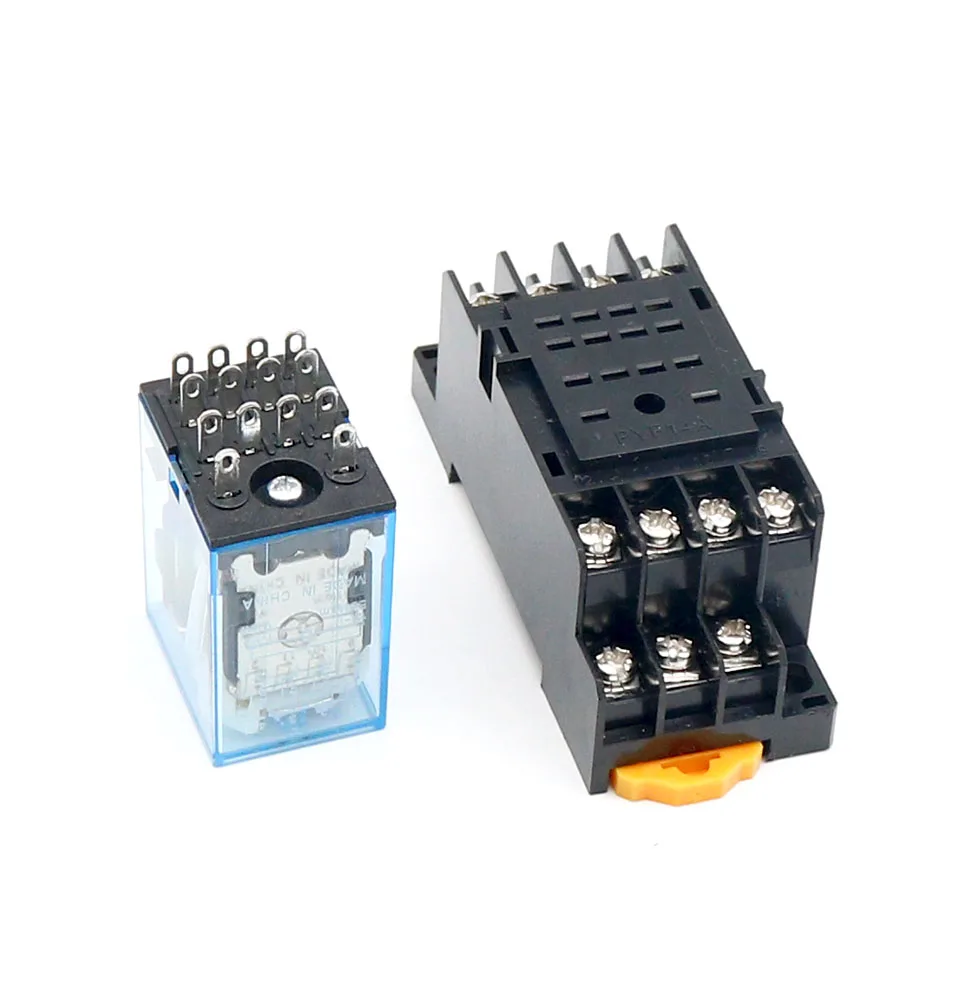 10 шт. MY4N DC12V AC12V DC24V AC24V катушка 5A 4NO 4NC светодиодный индикатор реле питания DIN рейка 14 контактов реле времени с разъемом