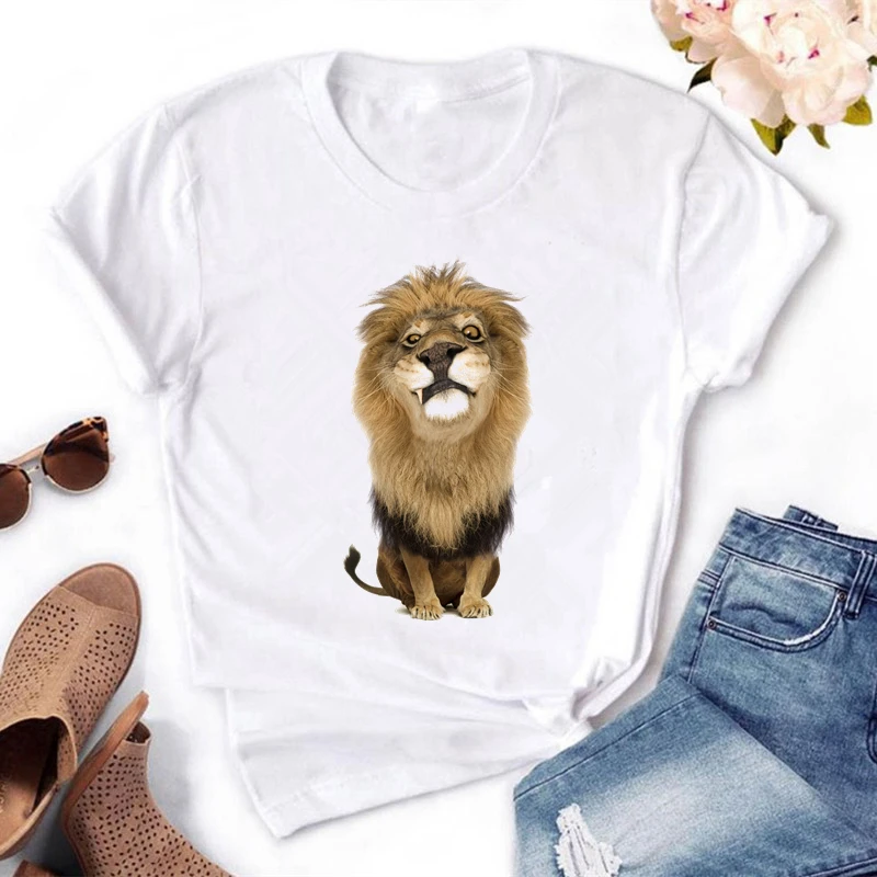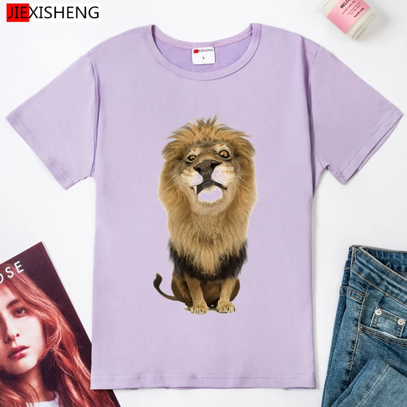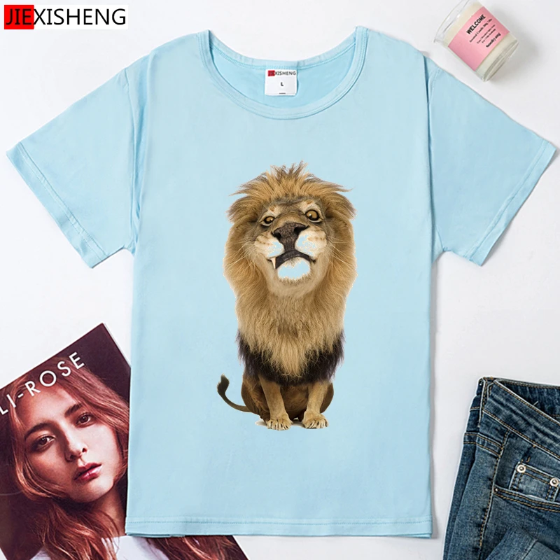 Новинка 2020, летняя Модная брендовая женская футболка с принтом льва, повседневные топы с коротким рукавом, футболка, женская одежда