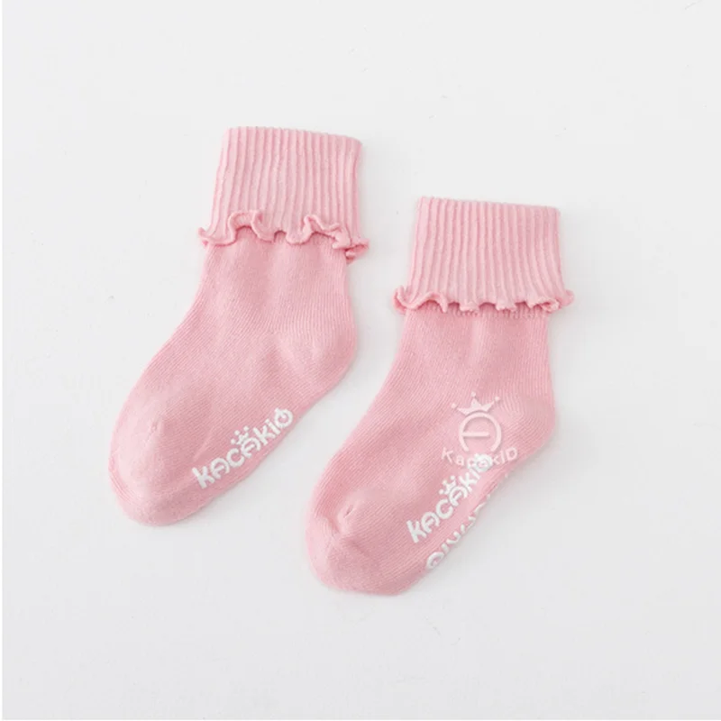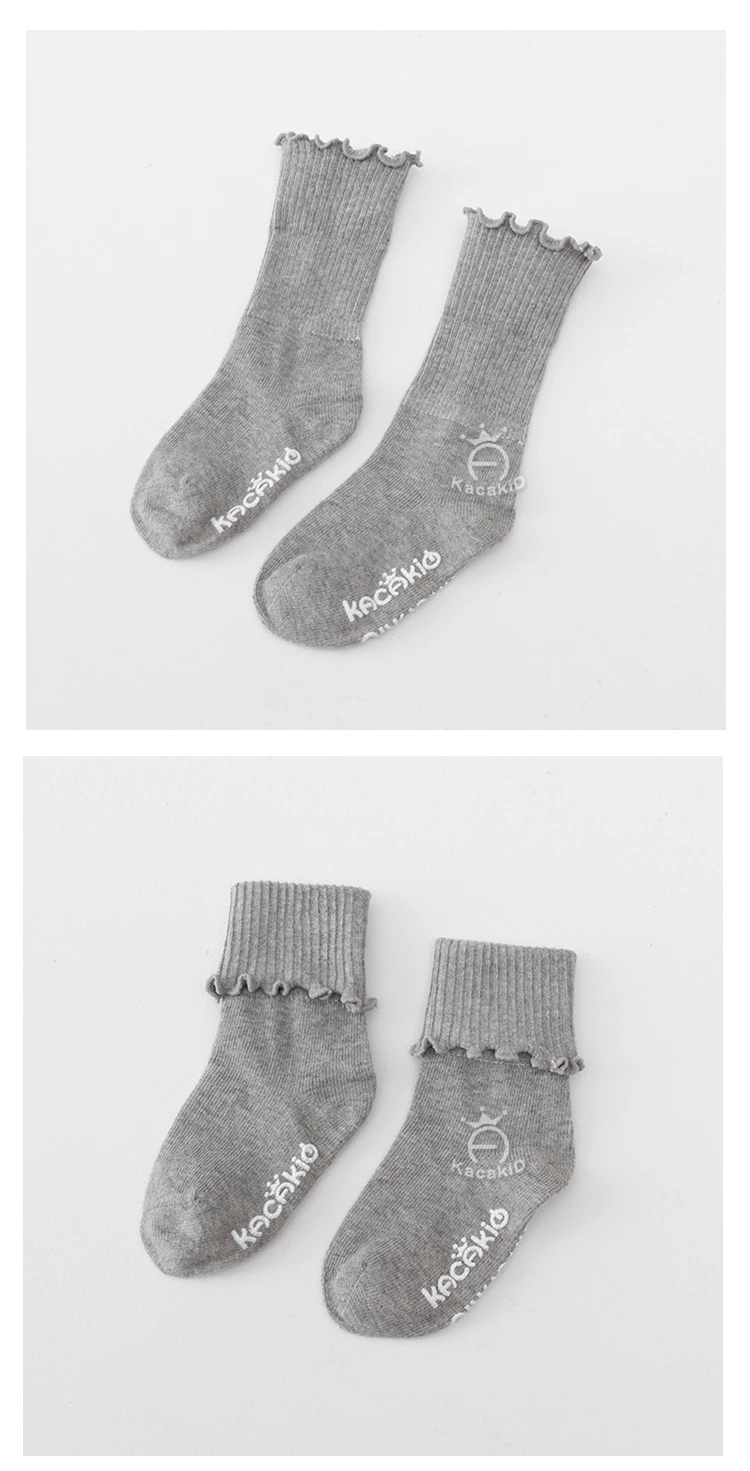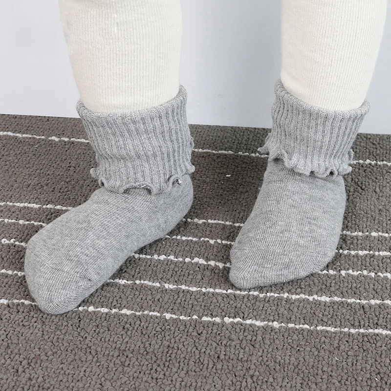Милые носки для новорожденных девочек, хлопковые нескользящие носки для пола, однотонные, карамельных цветов, с волнистыми кружевами, короткие носки, 3 пары