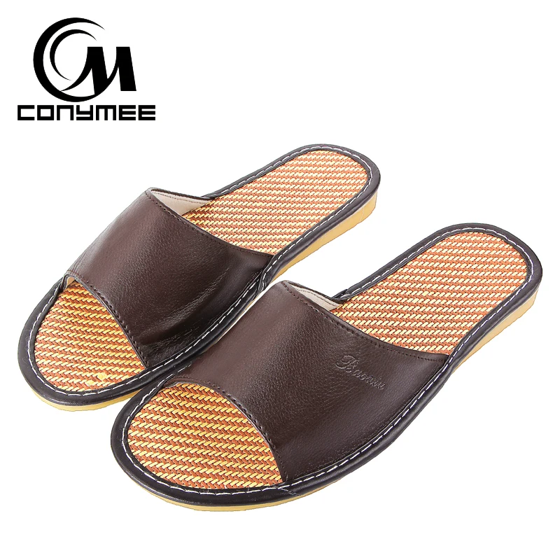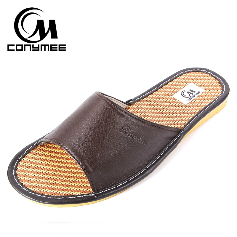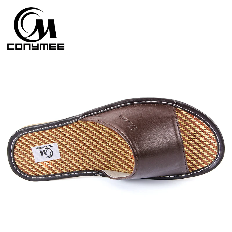 Летние мужские пляжные туфли CONYMEE, кожаные шлепанцы, льняные сандалии, мужские домашние тапочки, повседневные кроссовки, 2018