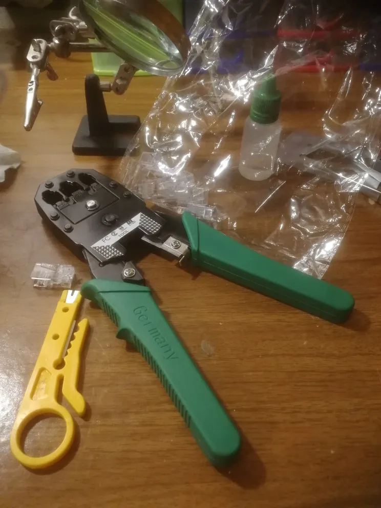 обжим без проблем. стрипер для витой пары по крайней мере удобный