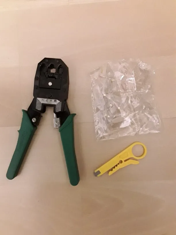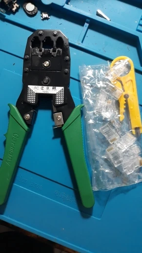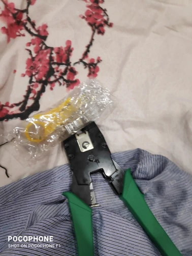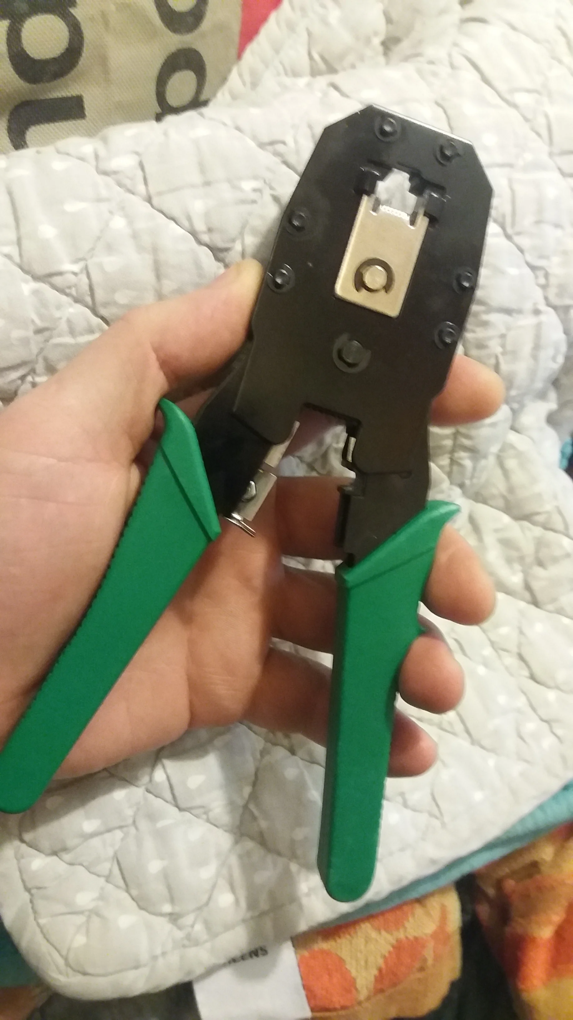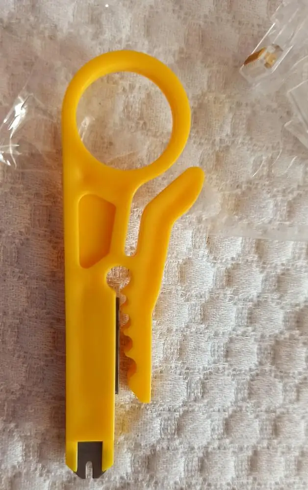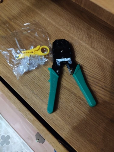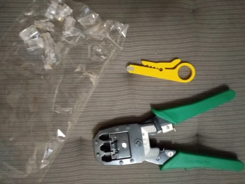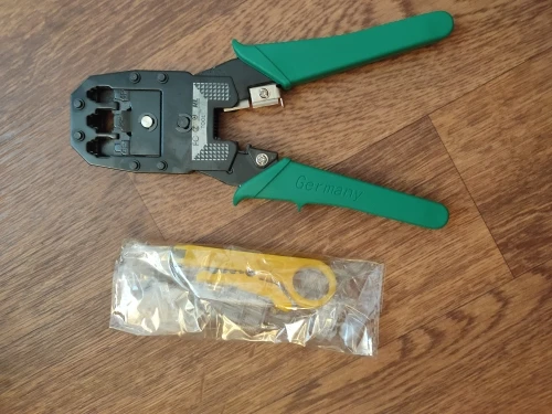 Попробовал работает, обжал витую пару. В комплекте RJ-45 несколько штук и желтенькая штучка для снятия изоляции, которая великолепно работает. Один оборот и изоляция снята. При обжиме сломалось крепление изоляции, но думаю это пластмасс RJ-45 не самого лучшего качества. Покупал 11.11 с хорошей скидкой, покупкой доволен