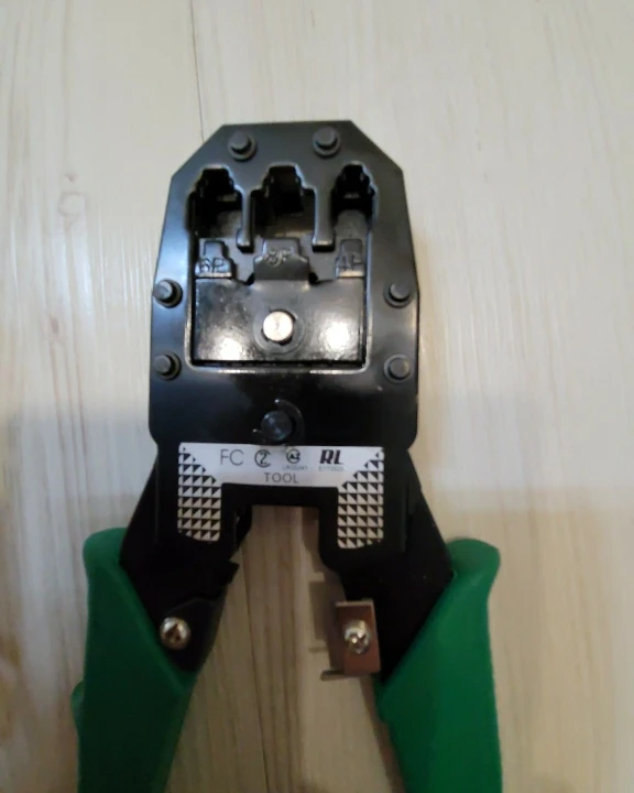 Обжимка работает. Нет жесткой фиксации разьема RJ45 в клещах.