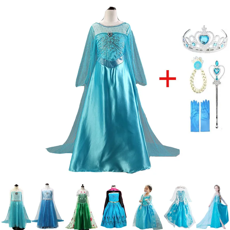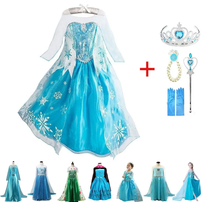 Костюм принцессы Эльзы для девочек, Снежная королева, костюм Анны и Эльзы для косплея, Детский комплект аксессуаров для вечевечерние на Хэллоуин