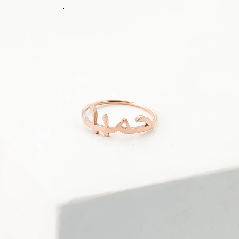 Кольцо с арабским именем на заказ, персонализированные ювелирные изделия, обручальные кольца из серебра и розового золота для женщин, кольцо из нержавеющей стали, Женское кольцо с именем