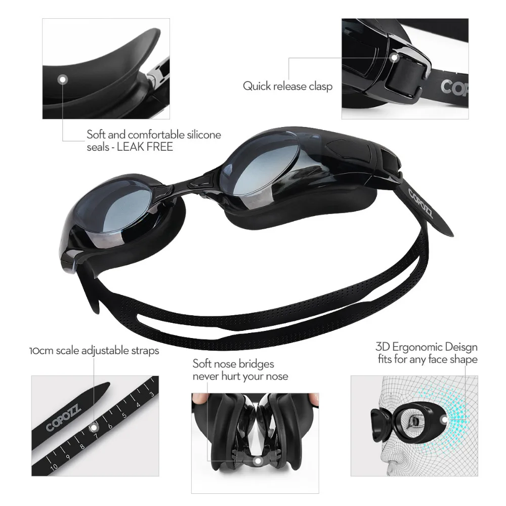 Очки для плавания COPOZZ, для мужчин и женщин, для взрослых, от 0 до-1,5 до-8, с двойной защитой от запотевания, УФ-излучения, с диоптриями