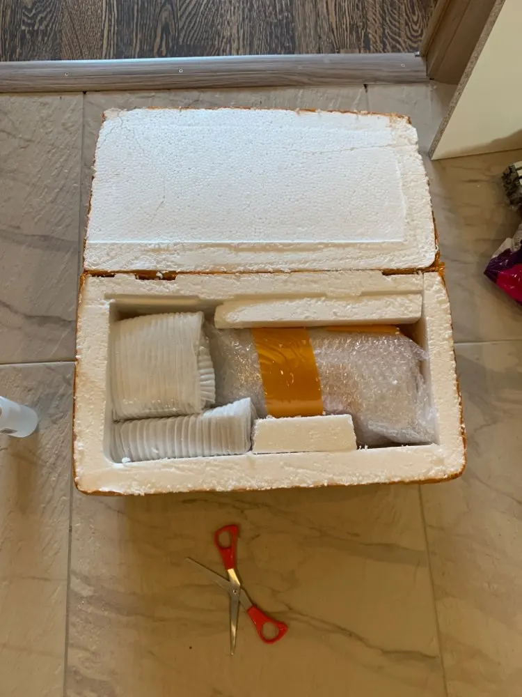 Упаковка с коробкой из пенополистирола, тест и отличная работа.