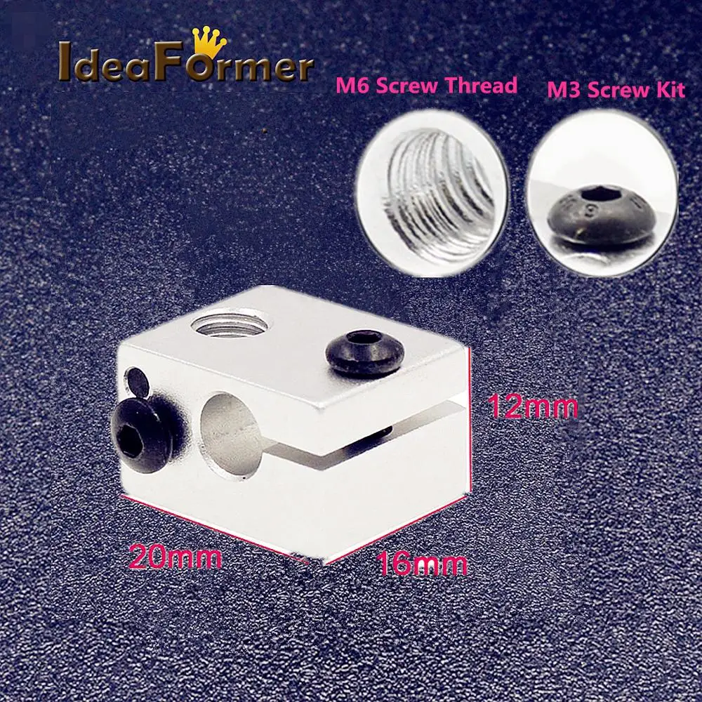Название: нагревательный блок E3D V6, 5 шт., 20*16*12 мм, Резьба M6 для нагревательных частей V5 V6 J-head с горячим концом. Состояние на 100% абсолютно новый Спецификация: 20 мм x 16 мм x 12 мм Принимаемая головка сопла: M6 ID трубки нагревателя: 6 мм Термопара/термистор ID: 3 мм Тип установочного винта: M3 Материал: алюминий