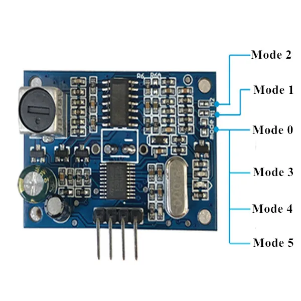 Модуль будет комплект пороговое значение в фабрикой-изготовителем, выполняем индивидуальные заказы, по умолчанию составляет 1,5 метров. Модуль работает каждые 200 мс. Когда обнаруженное значение расстояния цели меньше установленного порога, эхо-штырь выводит высокий уровень. В настоящее время обнаруженное значение расстояния больше установленного порога, и эхо-штырь выводит низкую мощность. Чтобы улучшить стабильность, фабрика по умолчанию обнаруживает, что расстояние, обнаруженное мишенью в два раза подряд, меньше установленного порога. Сигнал, нет возможности вождения. Во время применения должны быть добавлены Транзисторные приводные реле. Если есть особые требования, вам нужно изменить порог или другие настройки, вам нужно указать при покупке.
