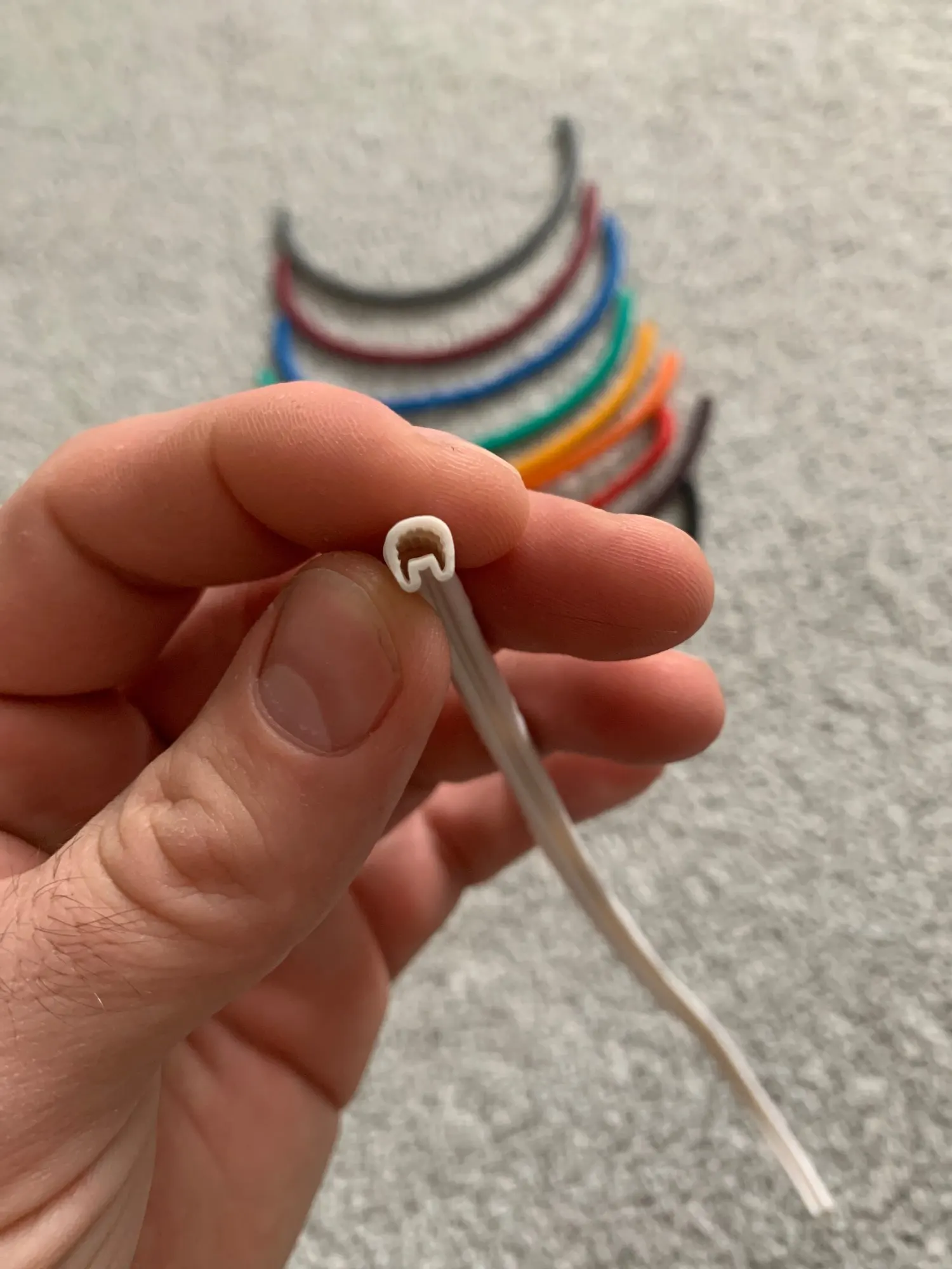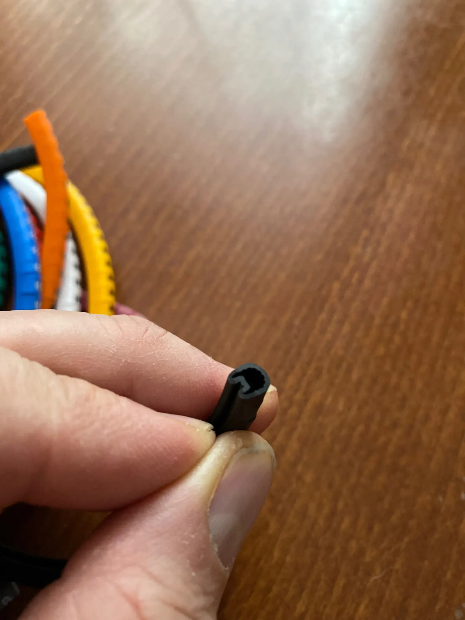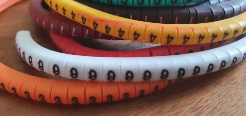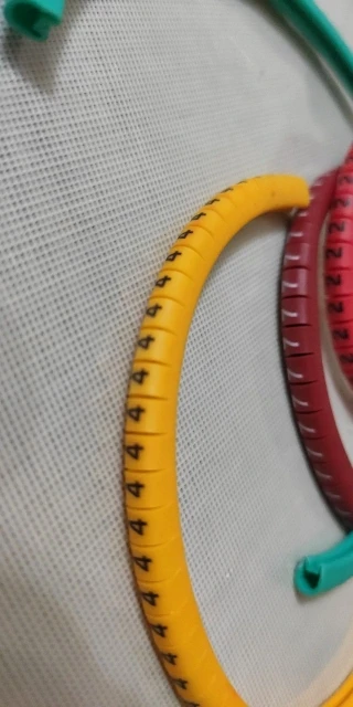 Циферки мягкие, что-то типа резины или силикона. Они сделаны кольцом, прорези нет, если не прорезать, то можно одевать на конец самого тонкого провода, будут болтаться, но не слетят.