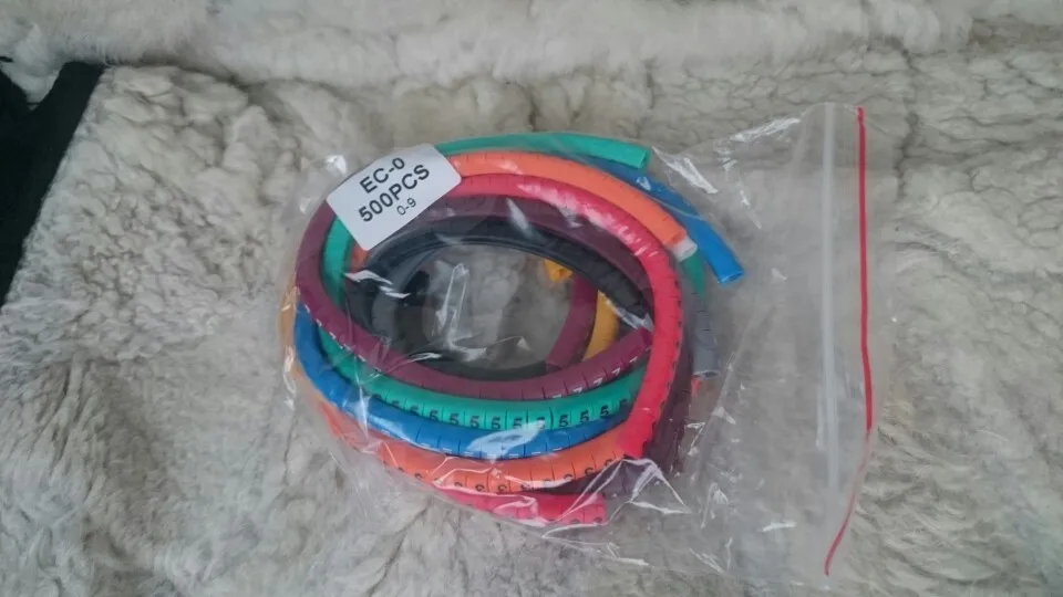 500PCS EC-0 Colored Cable Wire Marker 0 to 9 For Cable Size 1.5 sqmm Colored