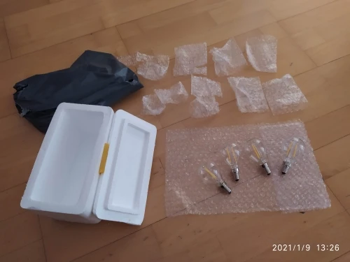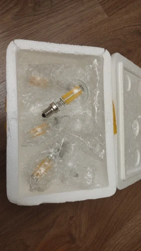 быстрая доставка, хорошая упаковка (в пенопласте). 2х ваттные лампочки-свечки нигде не мог найти в РФ. Светят неярко, жаль что теплым светом, холодного не видел.