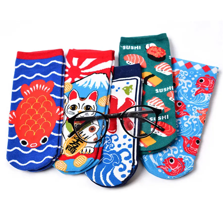WPLOIKJD Япония модные женские мультфильм носки креативные носки с принтами в виде кошек, рыба суши узор художественная смешные носки Harajuku милые носки Meia