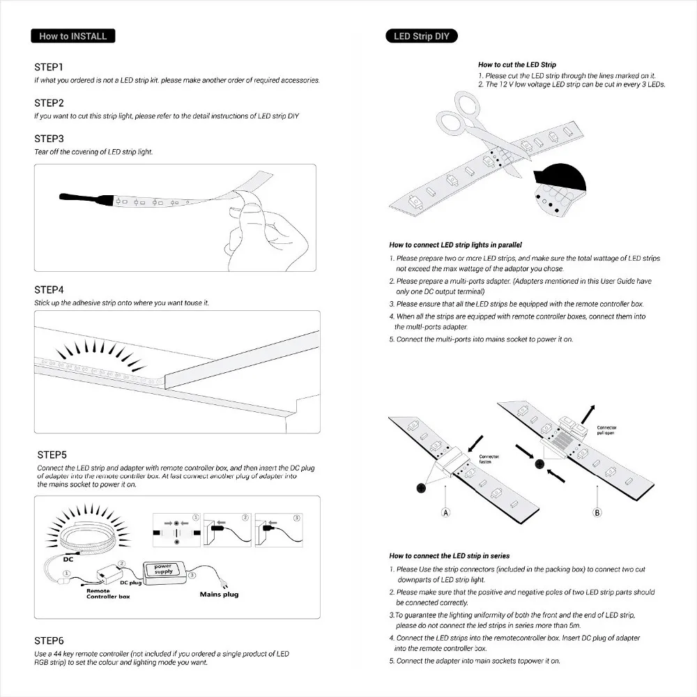 Светодиодная ленсветильник RGB 5-10 м, гибкая светодиодная лента 5050 2835 SMD 12 В постоянного тока + блок питания + пульт дистанционного управления, полный комплект для кухни