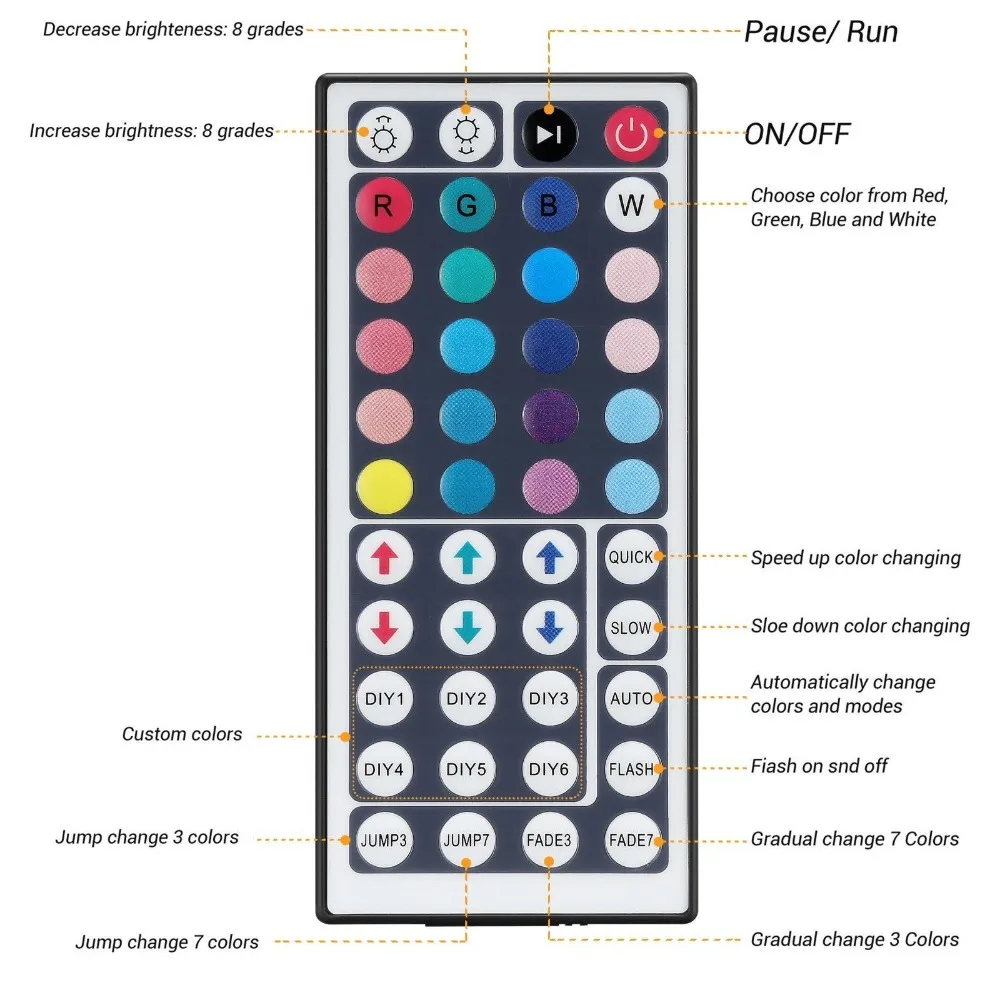 Спецификация:Водонепроницаемая светодиодная лента 5050Цвет: RGB (красный зеленый синий) вспышка SMD IP 60 СветодиодныйУгол обзора: 120 °Напряжение питания: 12 В постоянного токаРабочая температура: от-20 до 60 градусовКоличество СВЕТОДИОДНЫЙ: 60 светодиодный/m, 300 светодиодный sРабочий ток/5 м: 2АЛюмен: 900лмСрок службы: 50000 + часов44Key пульт дистанционного управленияРабочая температура: -20 °C-60 °CВыход: Три CMOS Слив-открытый выходРежим подключения: общий анод (+)Вход/выход: 12 ВМаксимальный ток нагрузки: 2 А каждого цвета 60 Светодиодный s на метр, не дешевый 30 светодиодный на метр светодиодный продукт другого магазина!