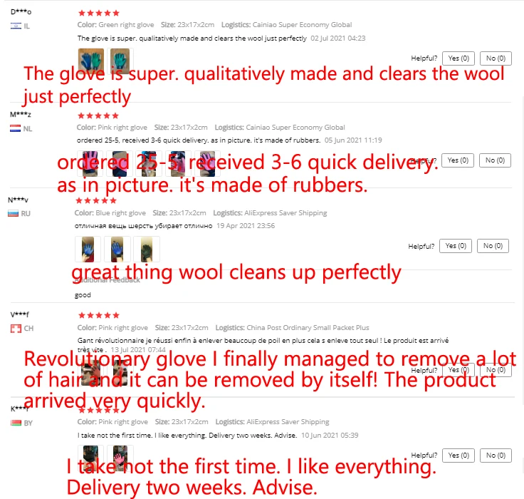 Варежка доставлялась долго, примерно дней 40 до Южного Урала. Трек отслеживался по Китаю, потом след "простывает". Товар на первый взгляд надлежащего качества. Функцию свою выполняет, с кота шерсть снял в лёгкую. С самой перчатки нужно постараться убрать волосню.