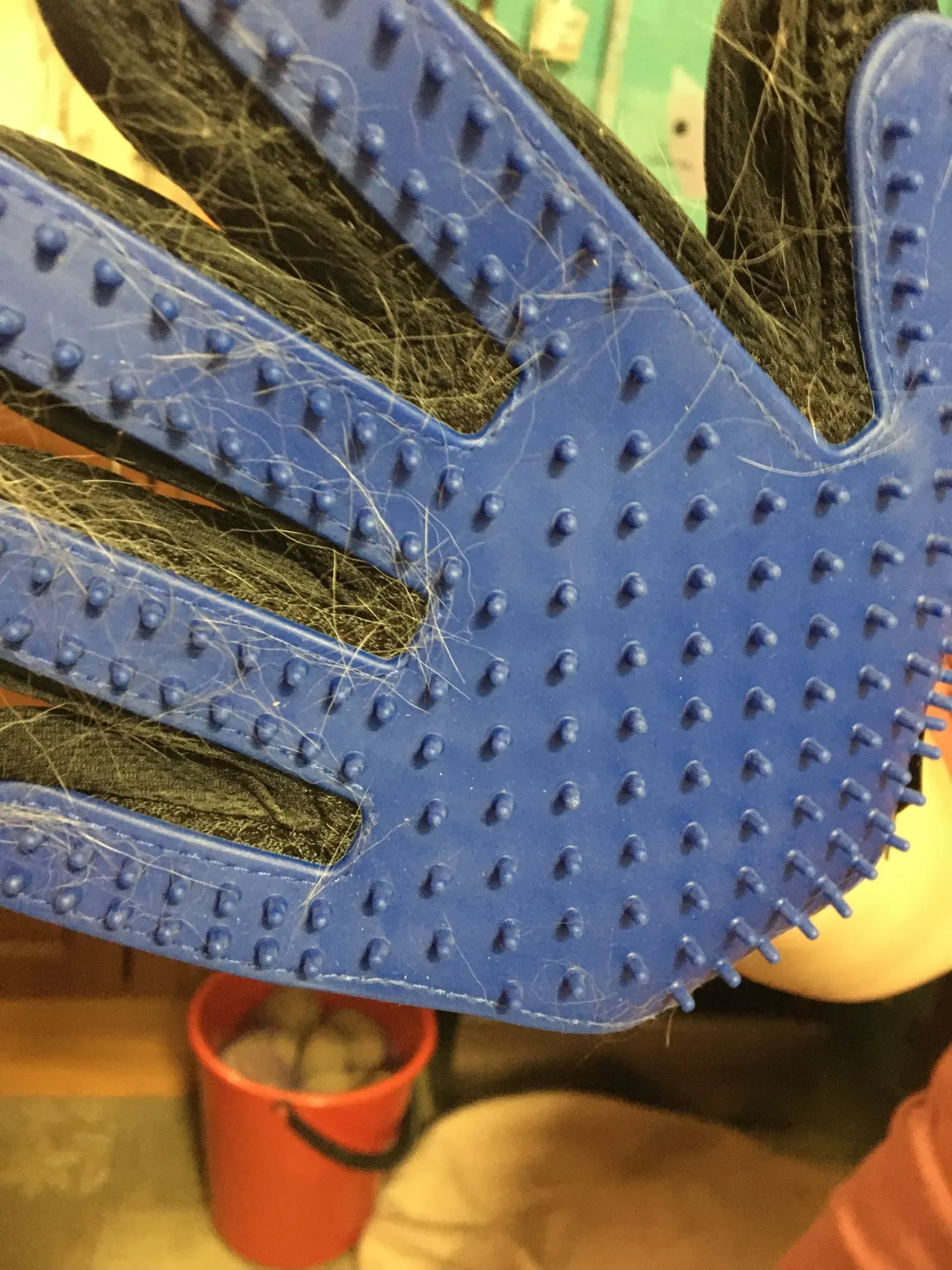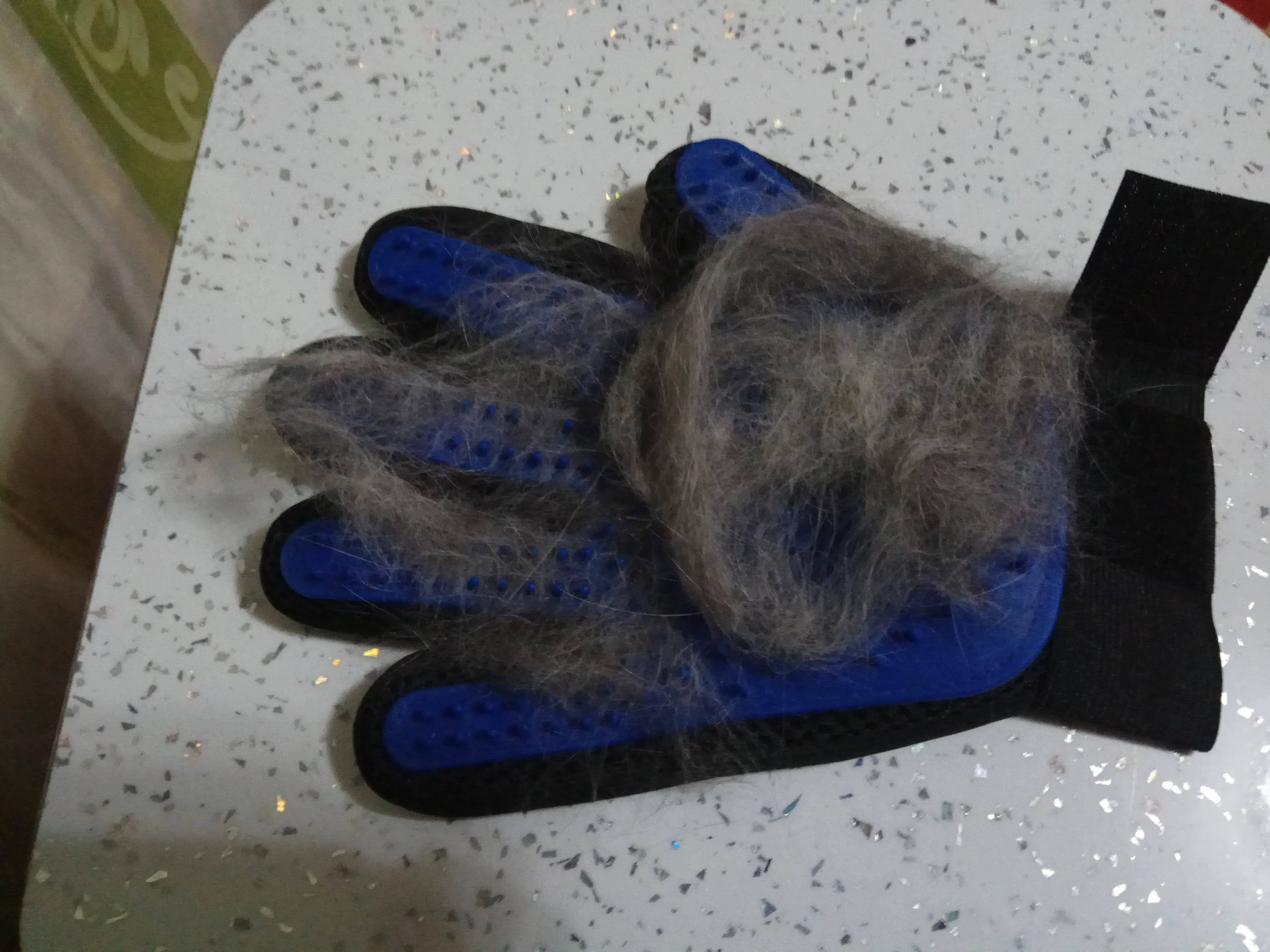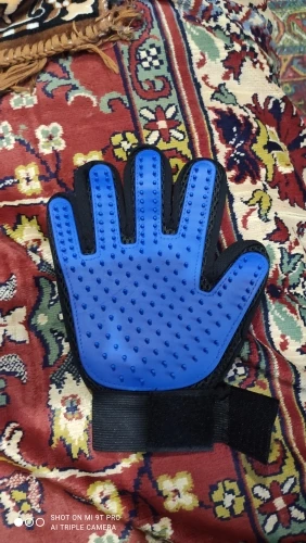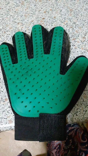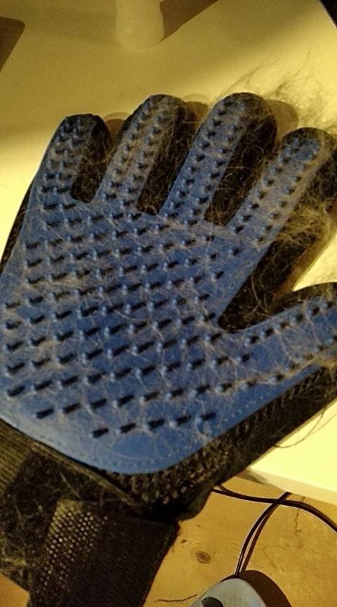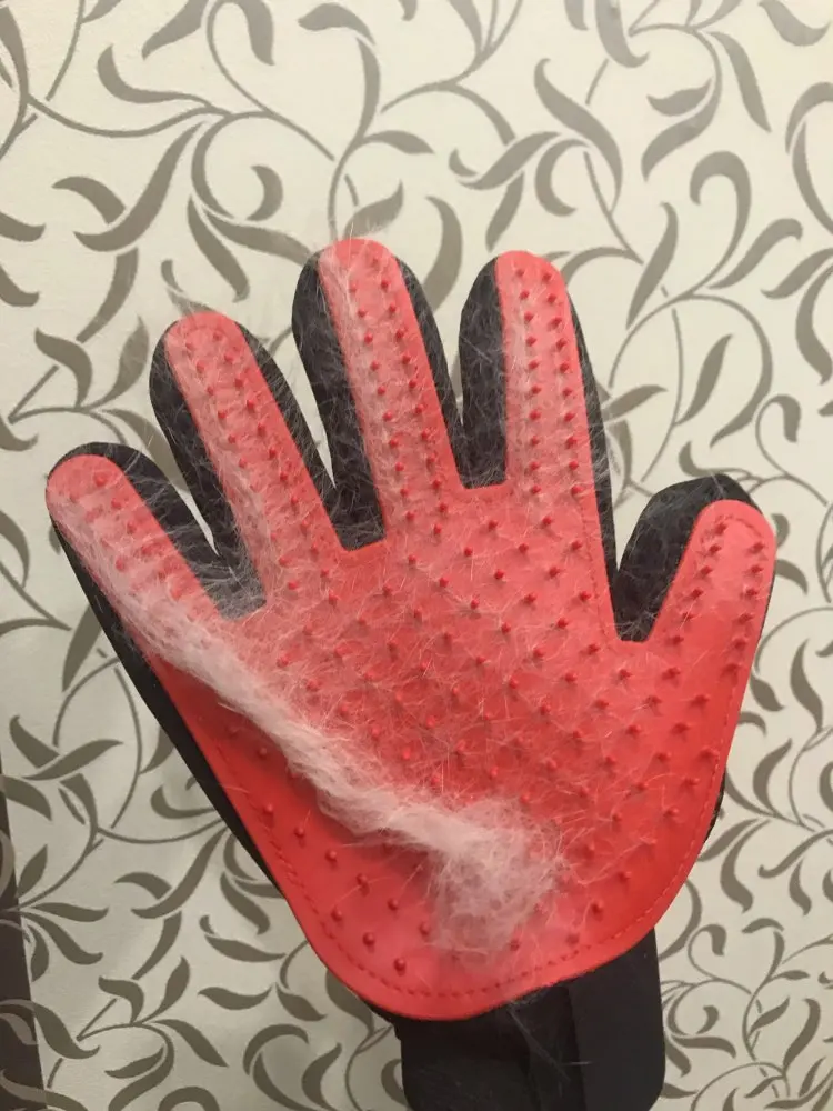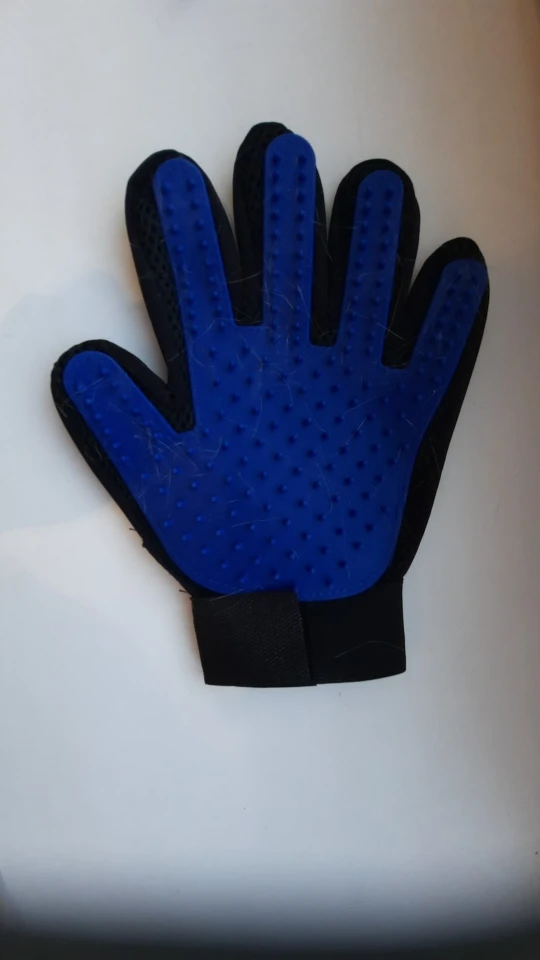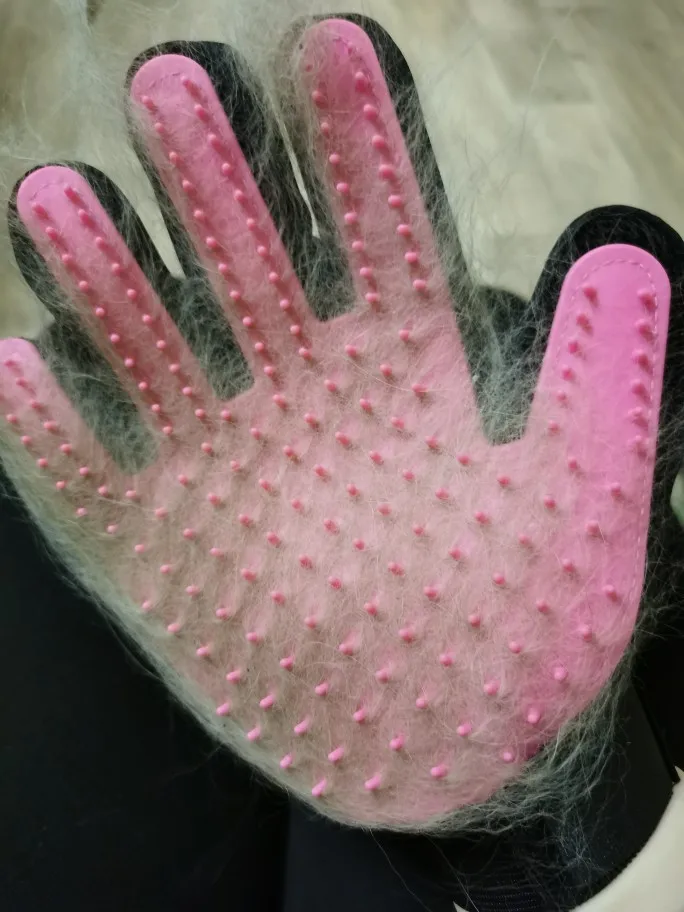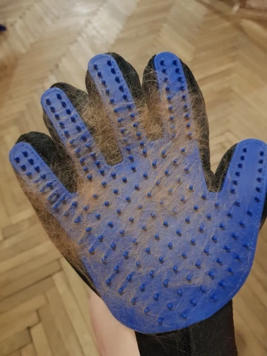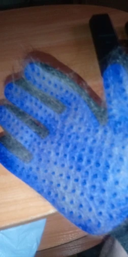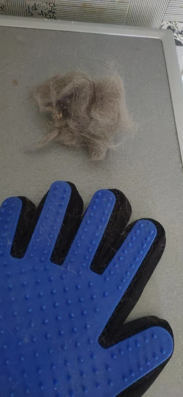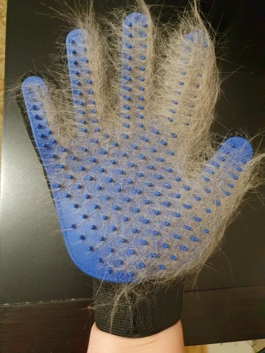 супер рукавица! волосы снимает на ура. У меня лайка с очень густой северной шерстью. За 1 минуту рукавицей получилось шикарно снять большинство вылезших волос.