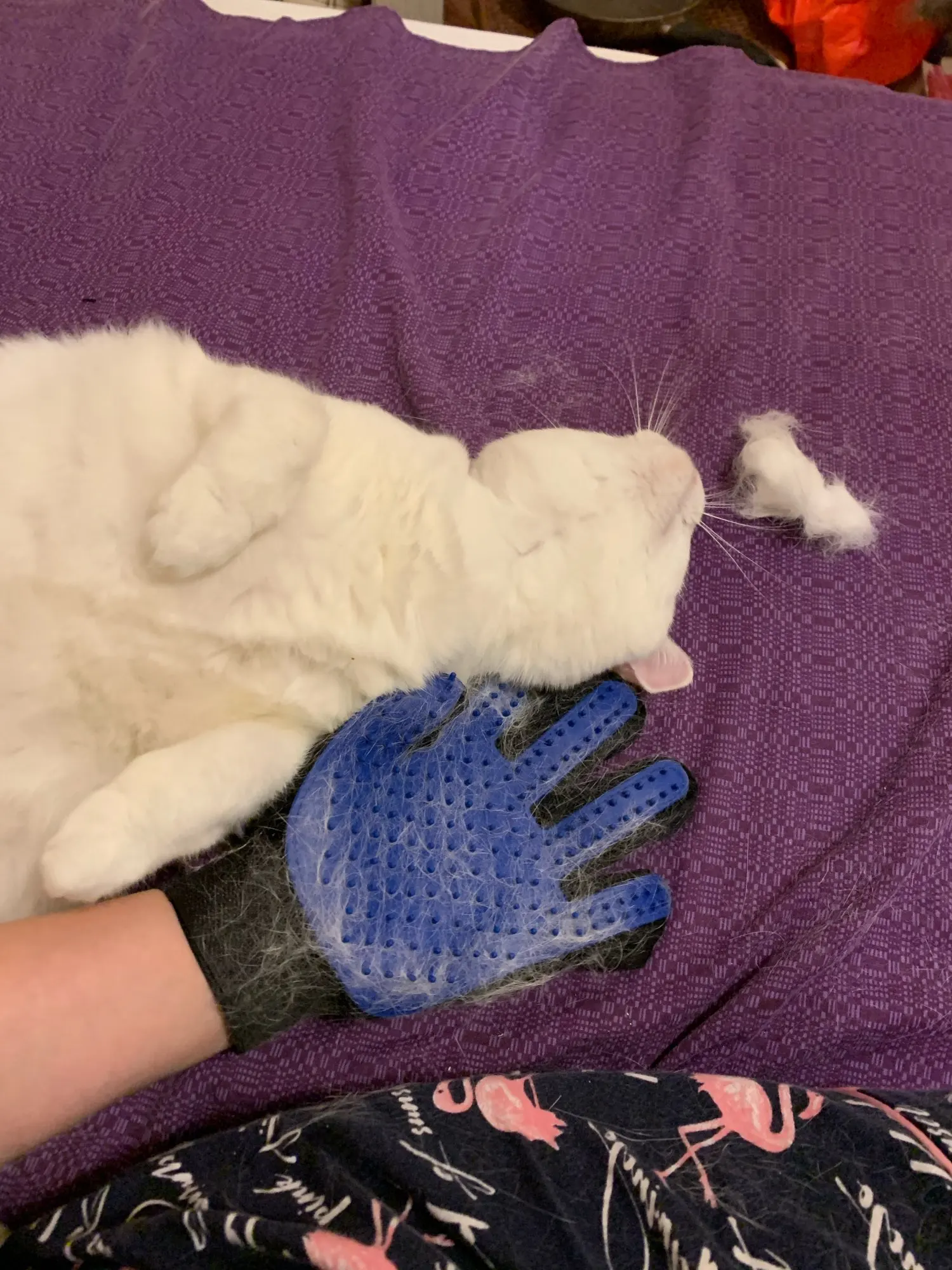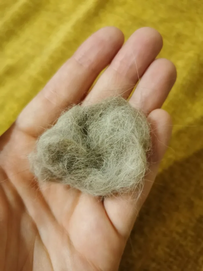 Из свежевычесанной фурминатором кошки вычесали еще одну перчатку пуха. Работает!