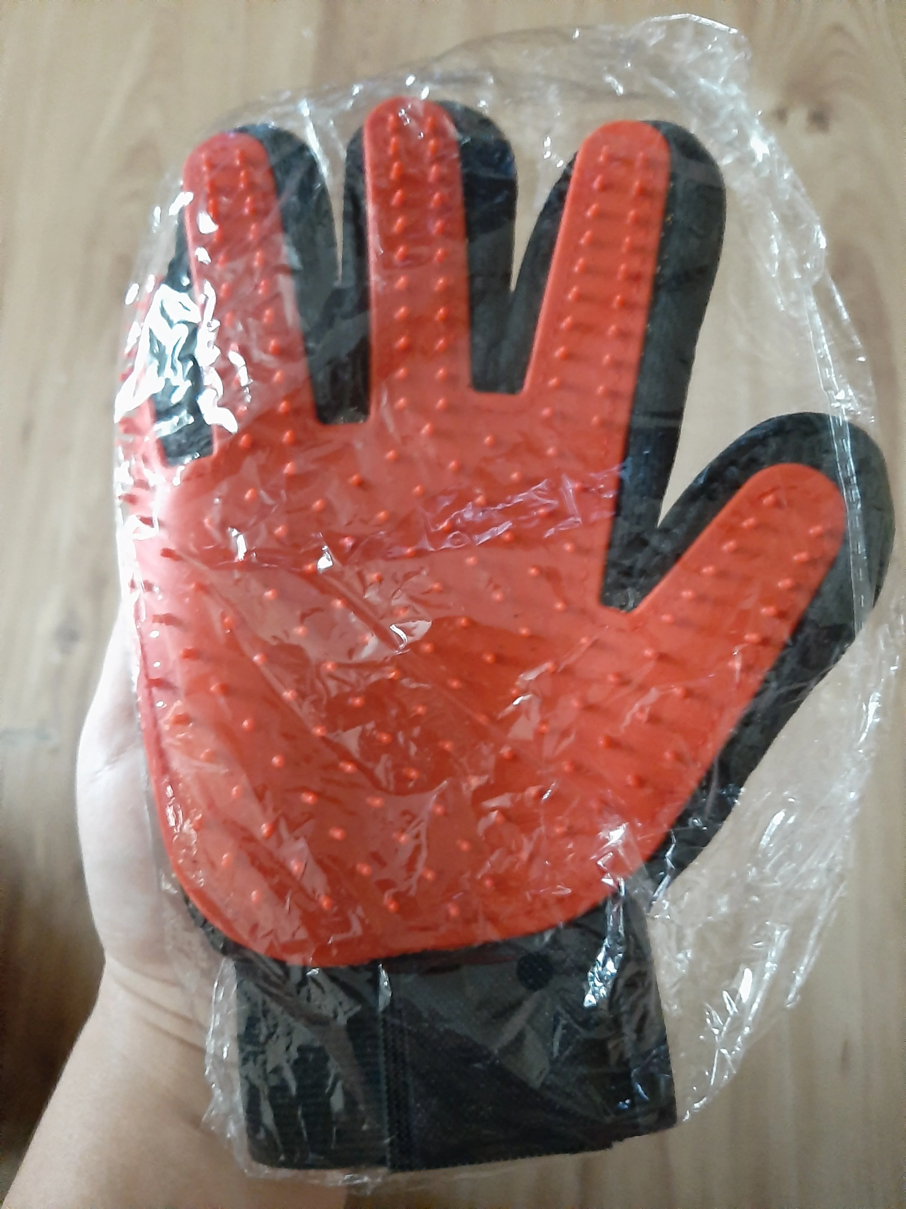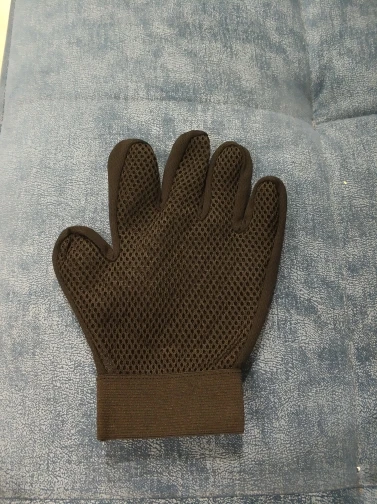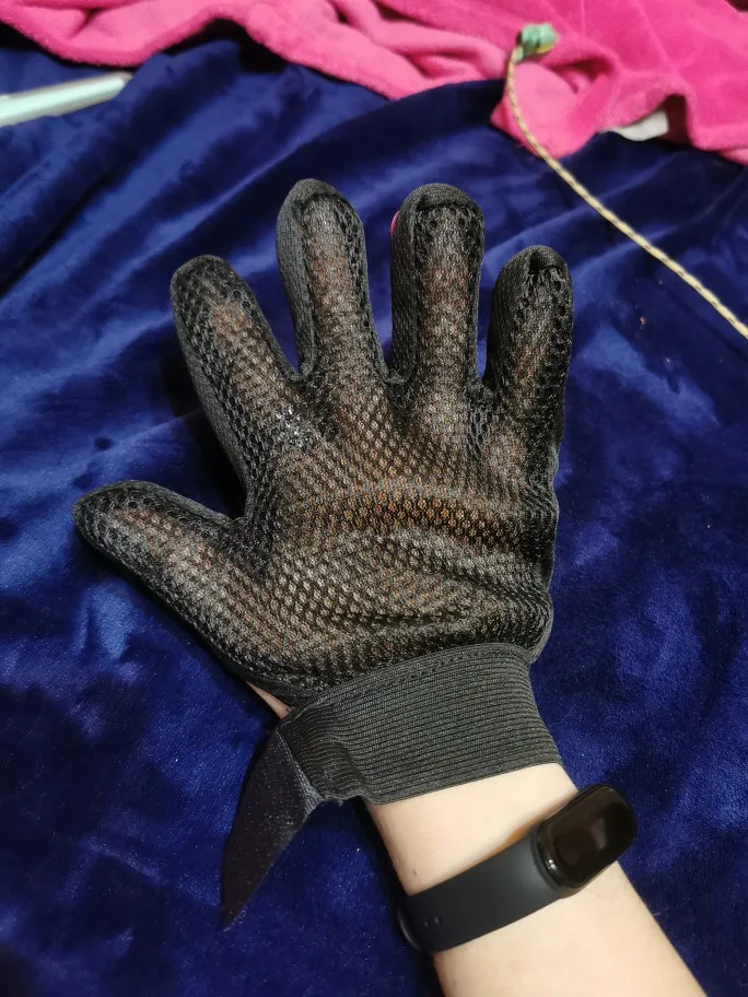 Перчатка хорошего качества , сгибается тоже хорошо, не такая уж и жёсткая, как некоторые писали. С функциями своими справляется! Коту нравится больше, чем обычная чесалка-пуходерка. Советую! Заказ пришёл в СПб за 3 ,5 недели