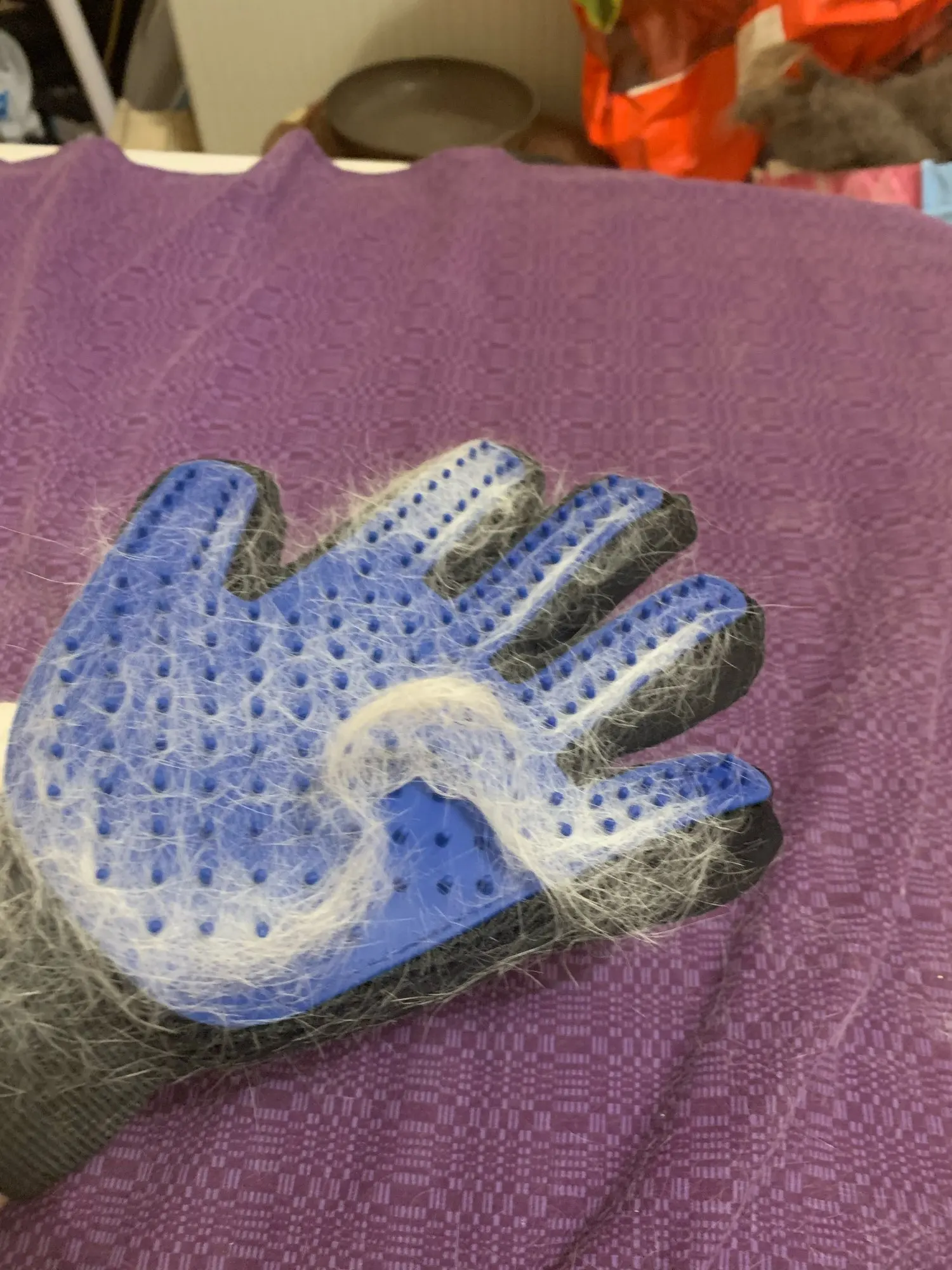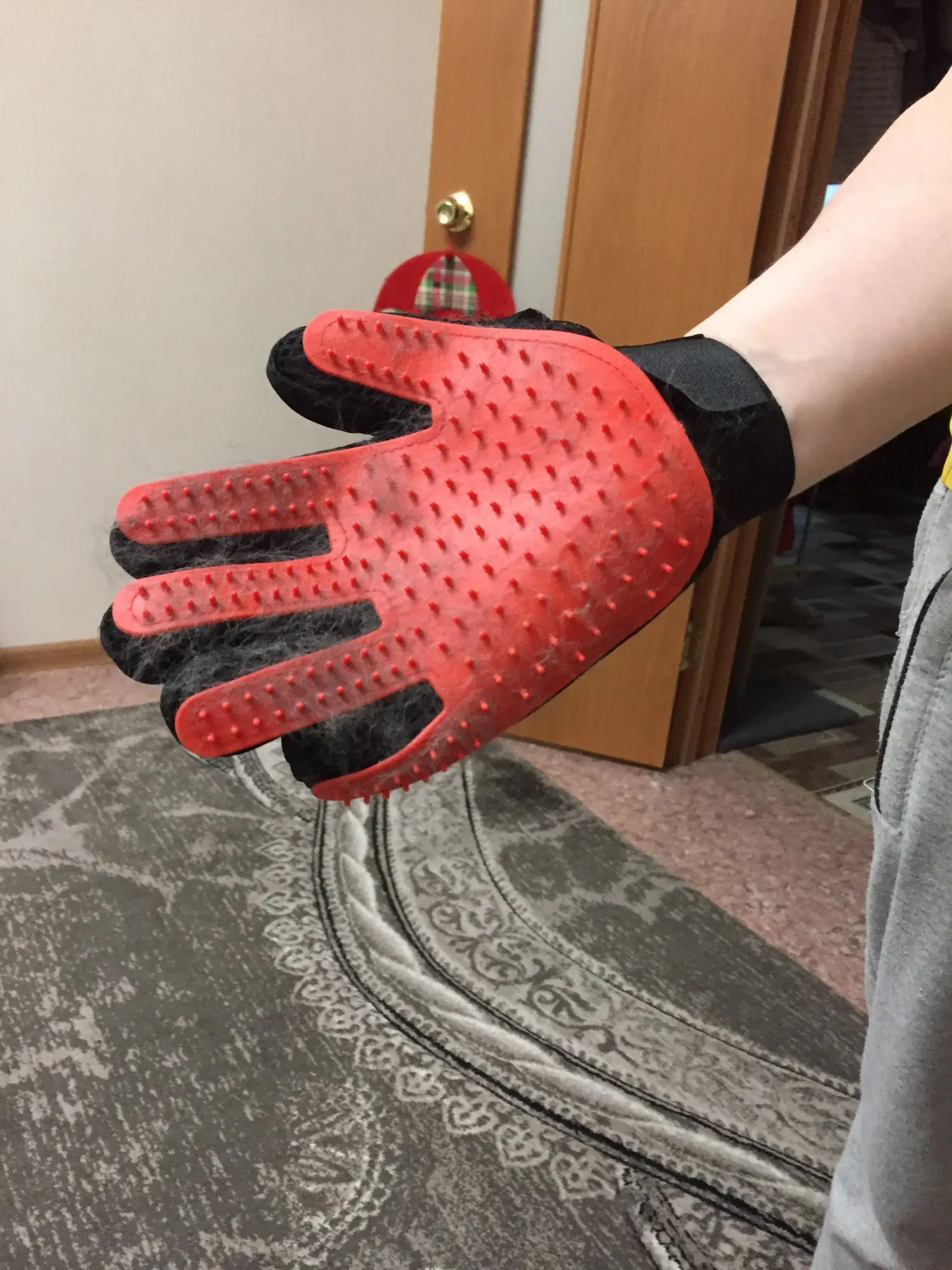 кошка очень полюбила глажку такой перчаткой, и ей приятно и для дома полезно)