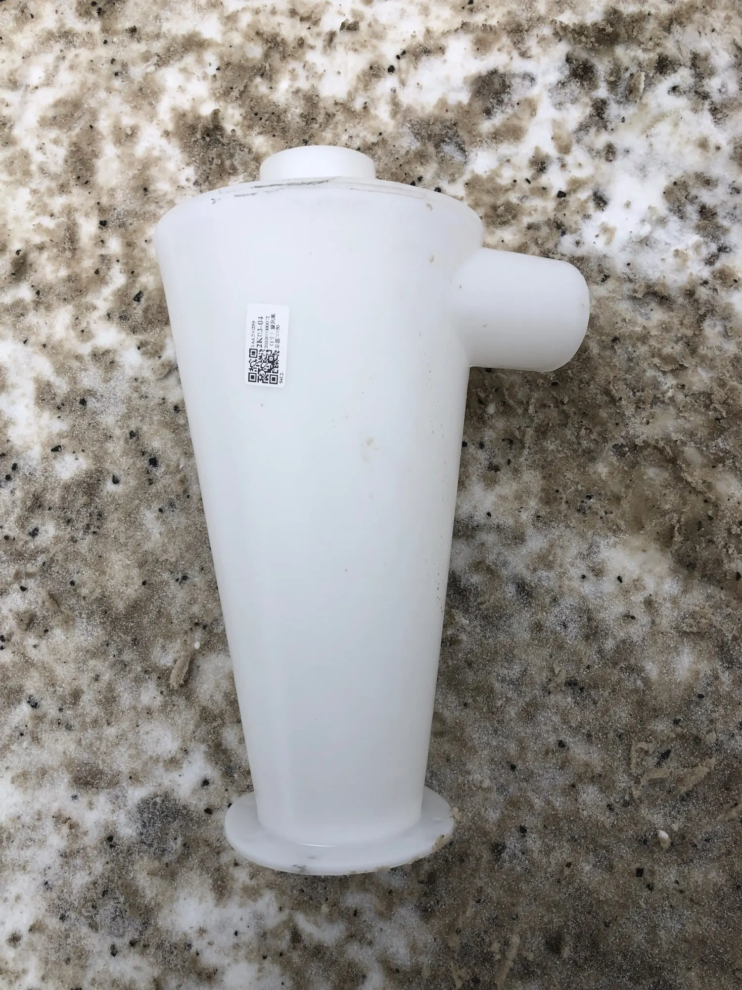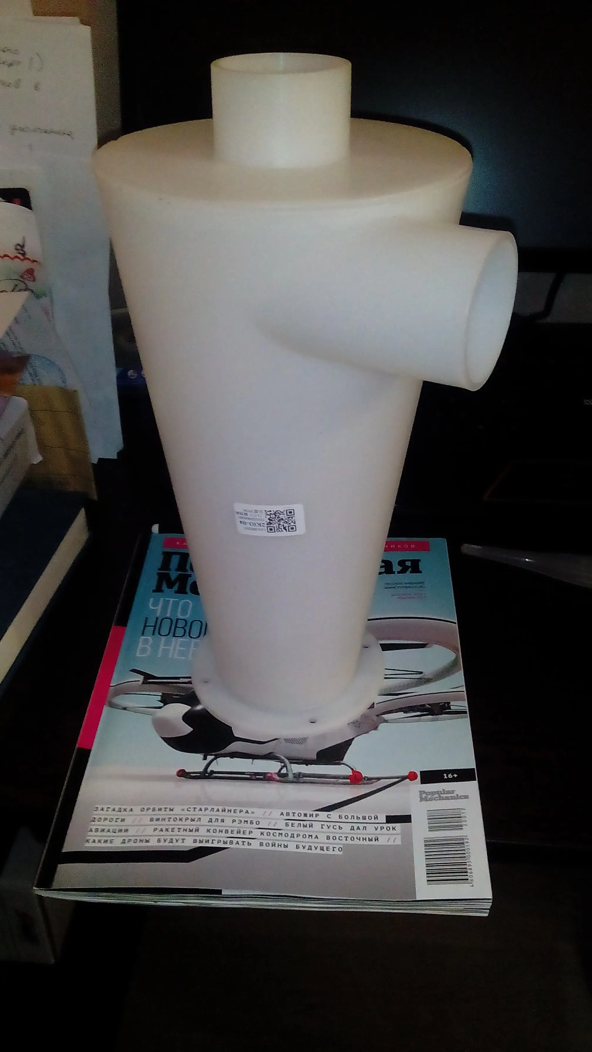 Отличная насадка типа "циклон" (технология известна уже лет 50, но мне было лень делать самому). Выполнена из прочного пластика. Цены завышена. В комплект входит только сама насадка-конус. В качестве переходника между шлангом пылесоса и "циклона" - использую канализационные отводы на 50мм (стыкуется отлично + есть переходные манжеты на 40 и 30мм). Большие/тяжелые частички мусора/грязи отсеивает на ура, дальше в пылесос летит пыль. Чисто для теста, накрутил на крышку жестяной банки от краски (на 2,6кг), стык уплотнил герметиком. В рабочей версии, между "циклоном" и пылесосом, поставлю коробочку с автовазовским бумажным воздушным фильтром, разумеется без родного мешка-сборника.