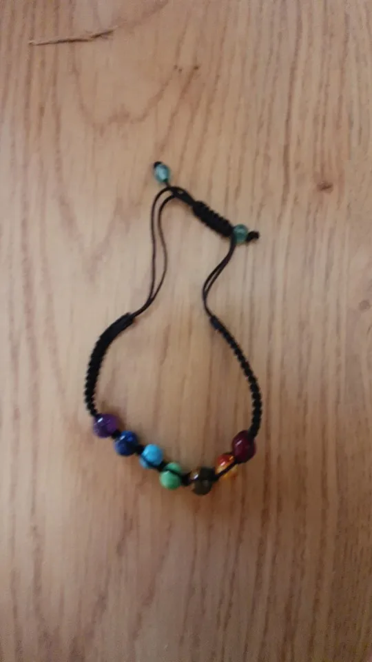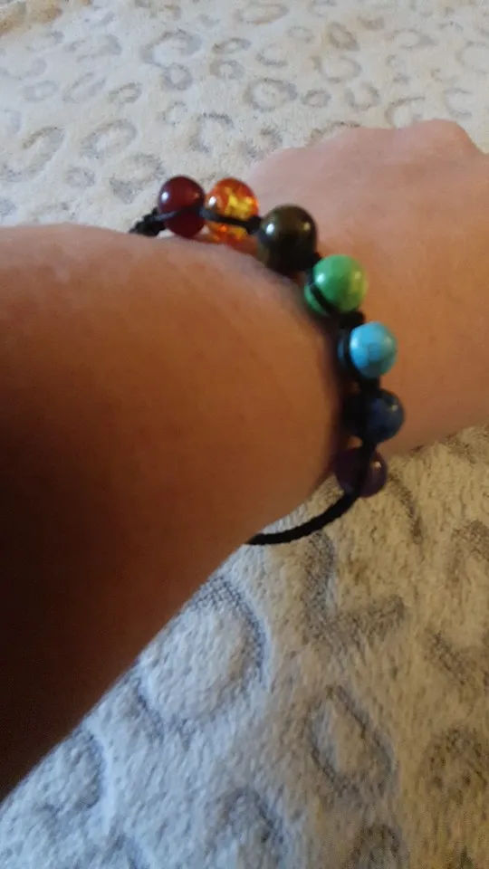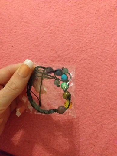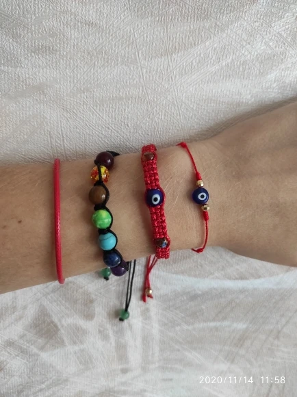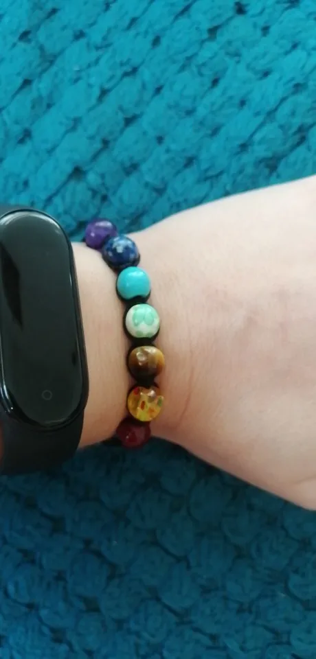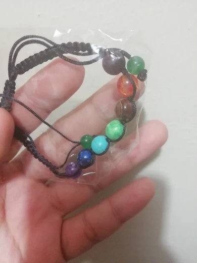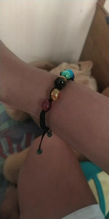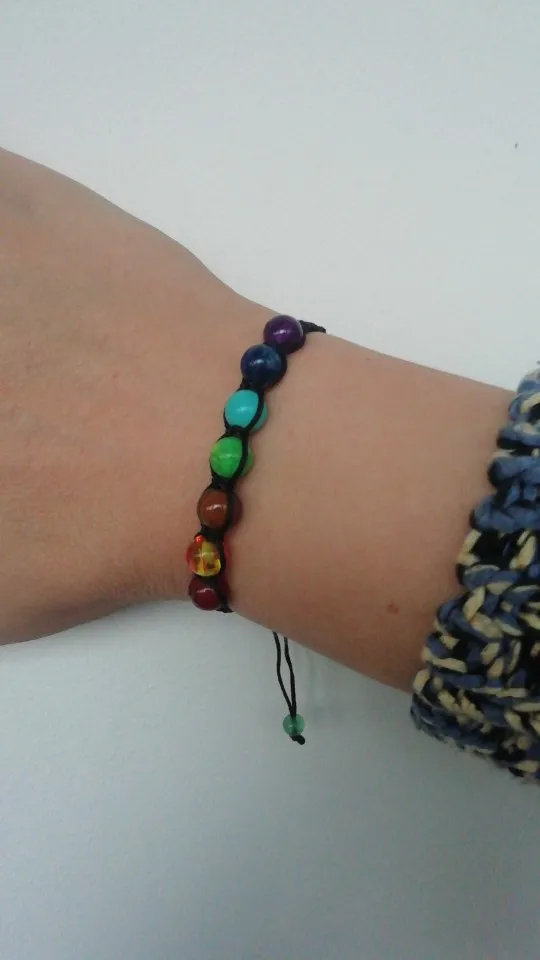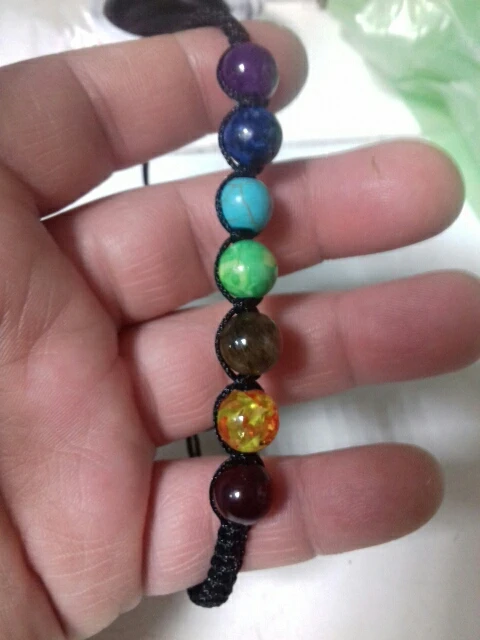 Браслет пришел в Москву на 20й день. Смотрится хорошо, но скорее на женскую руку, так как миниатюрный. почти все бусины - точно не натуральные камни. стекло или что то в этом духе, желтая так вообще пластик. красная и зеленая малая бусины с дефектами обработки, хотя и не критично.