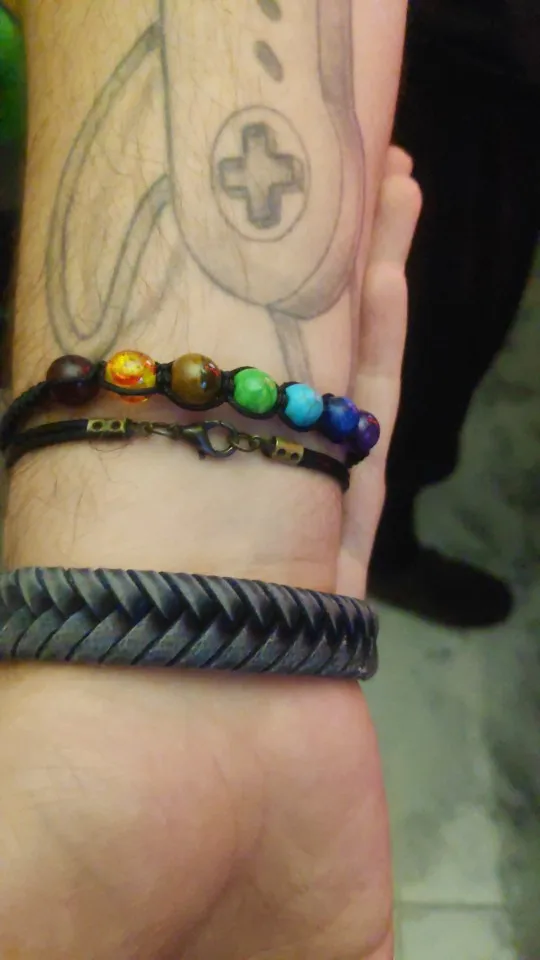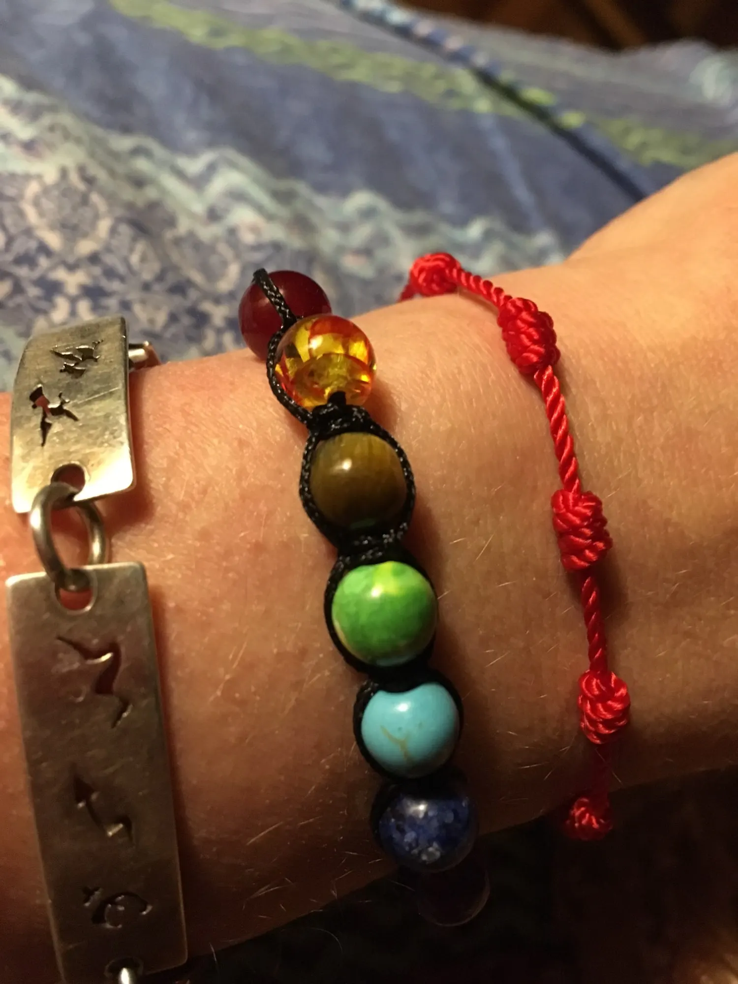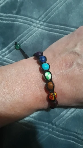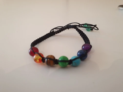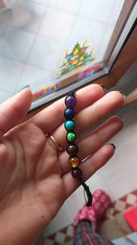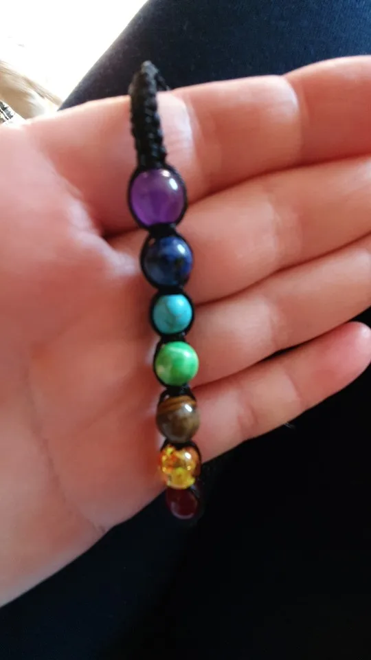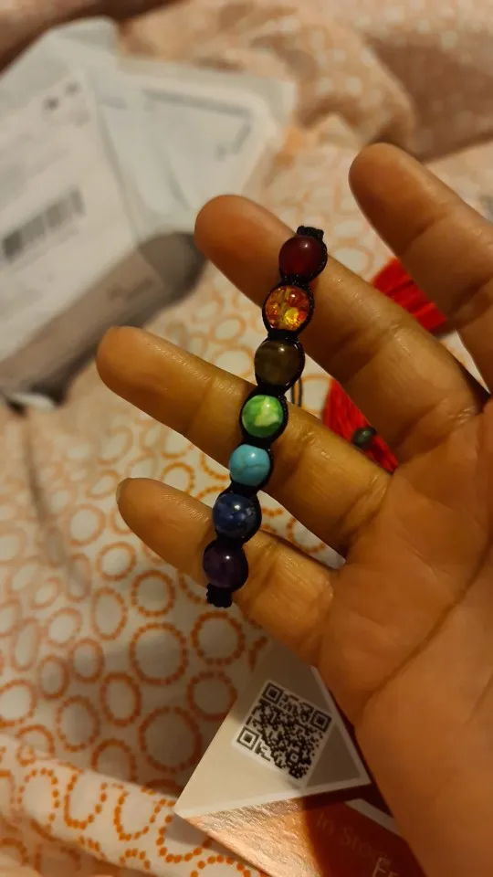 Браслет пришел в Москву на 20й день. Смотрится хорошо, но скорее на женскую руку, так как миниатюрный. почти все бусины - точно не натуральные камни. стекло или что то в этом духе, желтая так вообще пластик. красная и зеленая малая бусины с дефектами обработки, хотя и не критично.