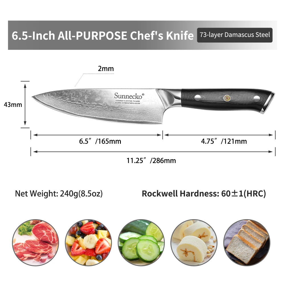 Нож шеф-повара из дамасской стали, 6,5 дюйма, VG10