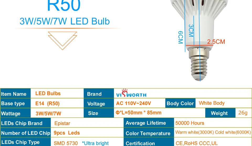 R50 светодиодный лампы E14 база SMD5730 лампада светодиодный Bombillas AC 110 220V 240V теплый белый холодный белый Светодиодный светильник для дома