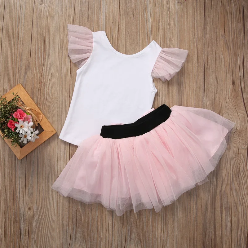 Одинаковые комплекты для семьи милые летние белые однотонные футболки для мамы и дочки, 2 предмета топы, розовые кружевные юбки-пачки с бантом