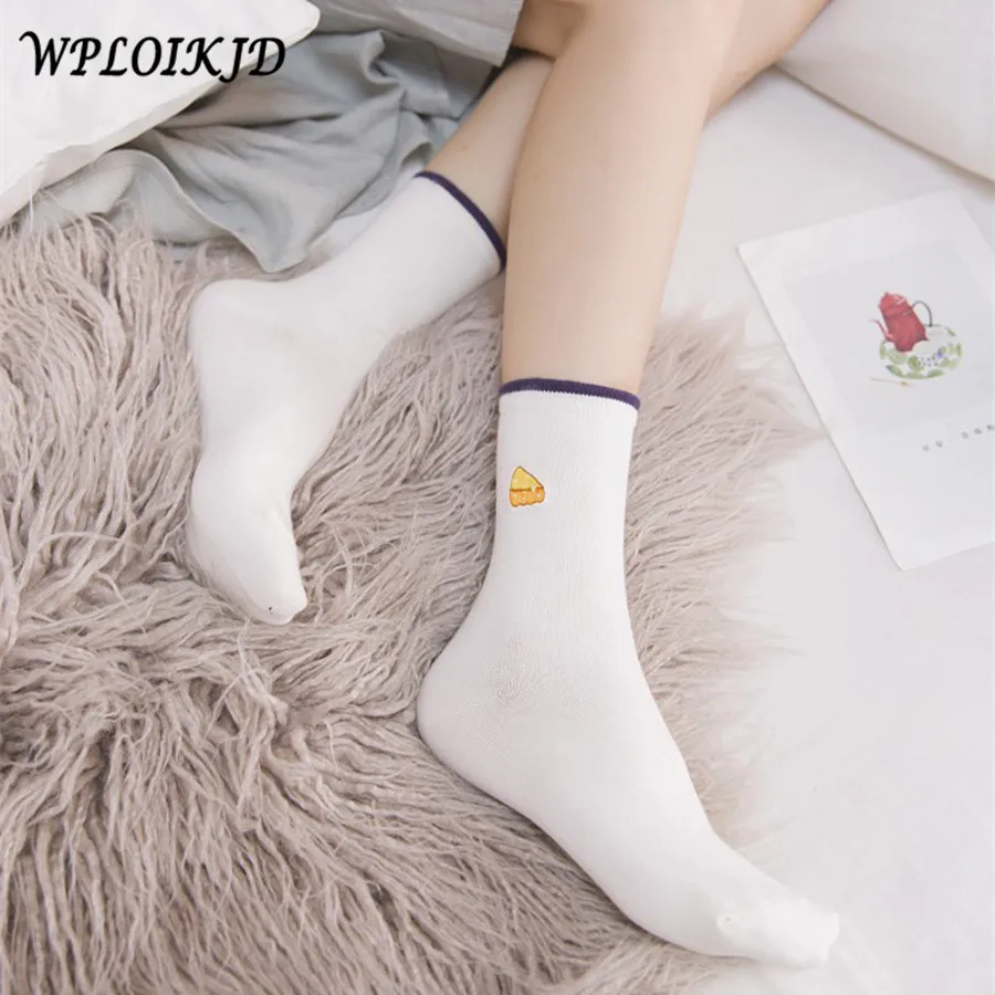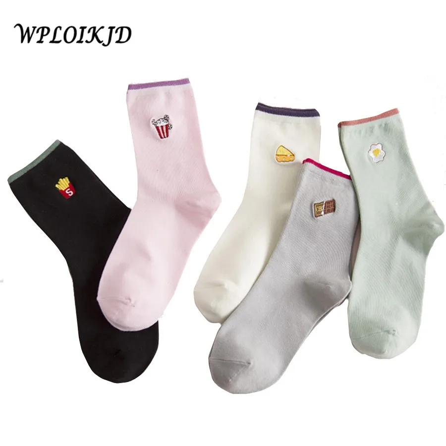 WPLOIKJD1 пара корейские креативные модные калцеты Mujer с вышивкой Мультяшные снэки картофель фри попкорн яйцо Милая забавная Харадзюку