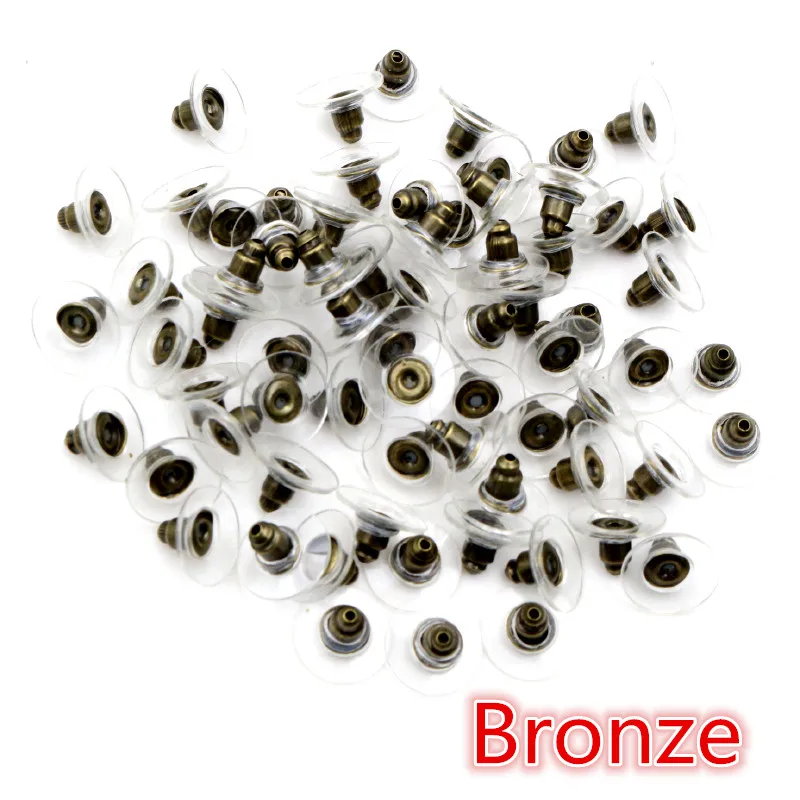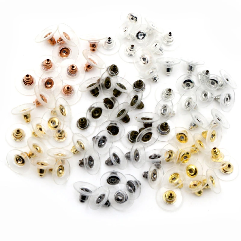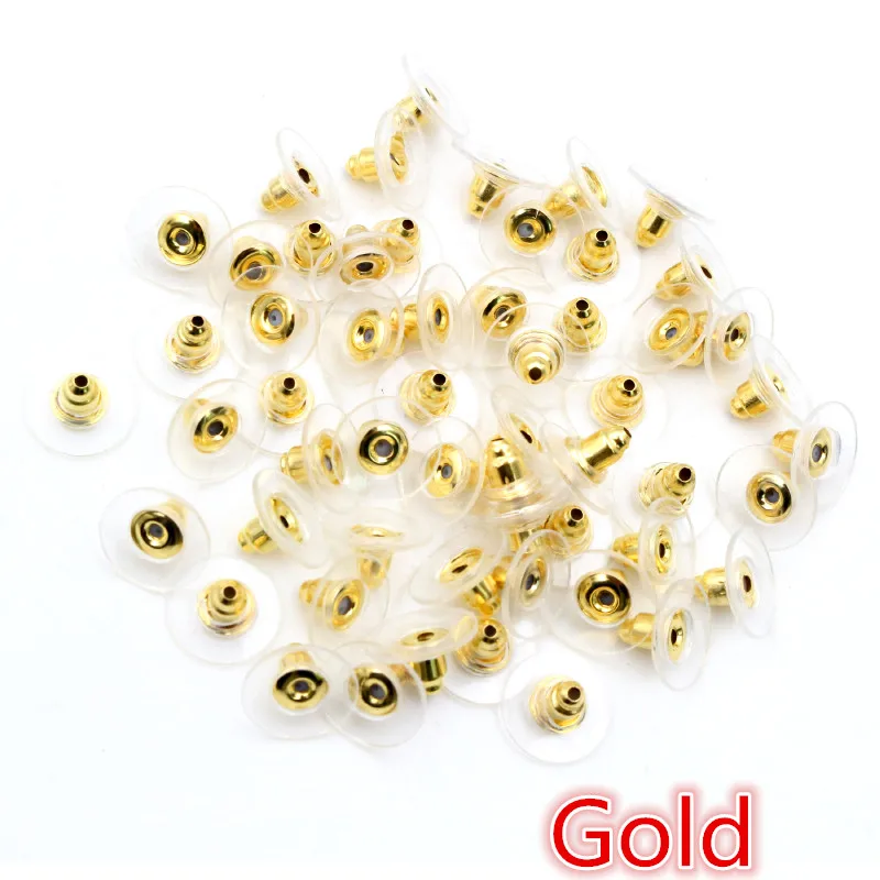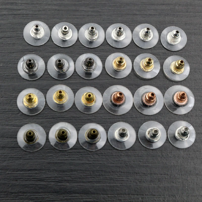 100 шт.лот 11x6 мм пластиковые металлические сережки, заглушки для пули, затычки для ушей, позолоченные посеребренные фурнитура, ювелирные аксессуары