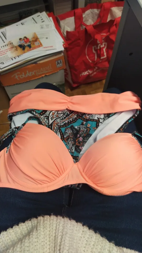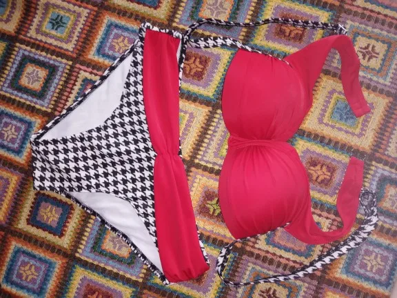 Купальник, очень красивый, но 50 размер в объёме маловат, низ еле налез.
