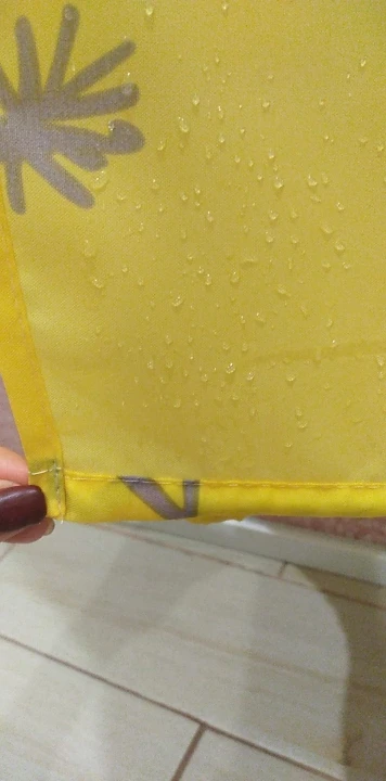 Отличная штора. Воду не пропускает. Сделана качественно, аккуратно. Цвет как на фото, очень яркая. Внутри нижнего шва утяжелитель. Продавцу спасибо, отправил очень быстро. Пришла на 12 дней раньше назначенного срока. Покупкой очень довольна! Рекомендую.