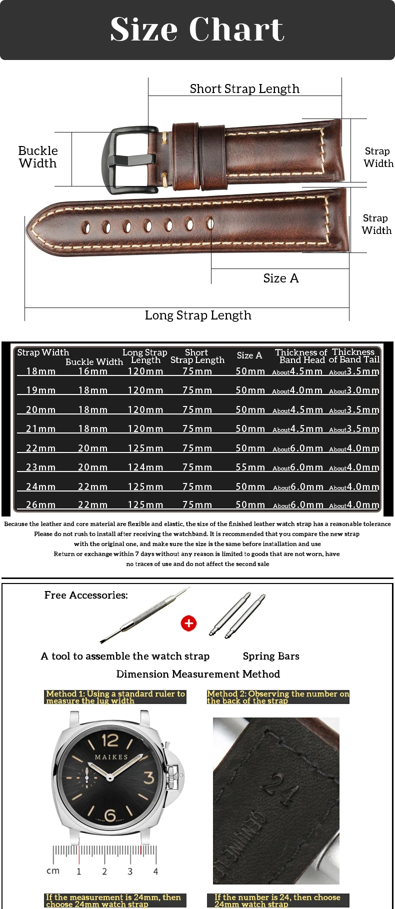 Ремешок для часов MAIKES, винтажный, масляный, восковой, кожаный, 20 мм, 22 мм, 24 мм, 26 мм, с пряжкой из нержавеющей стали