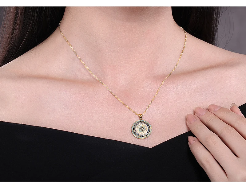 KALETINE 925 стерлингового серебра ожерелья турецкий большой голубой камень с клипсами Дурной глаз круглый кулон для женщин ожерелье персонализированные для мужчин ювелирные изделия